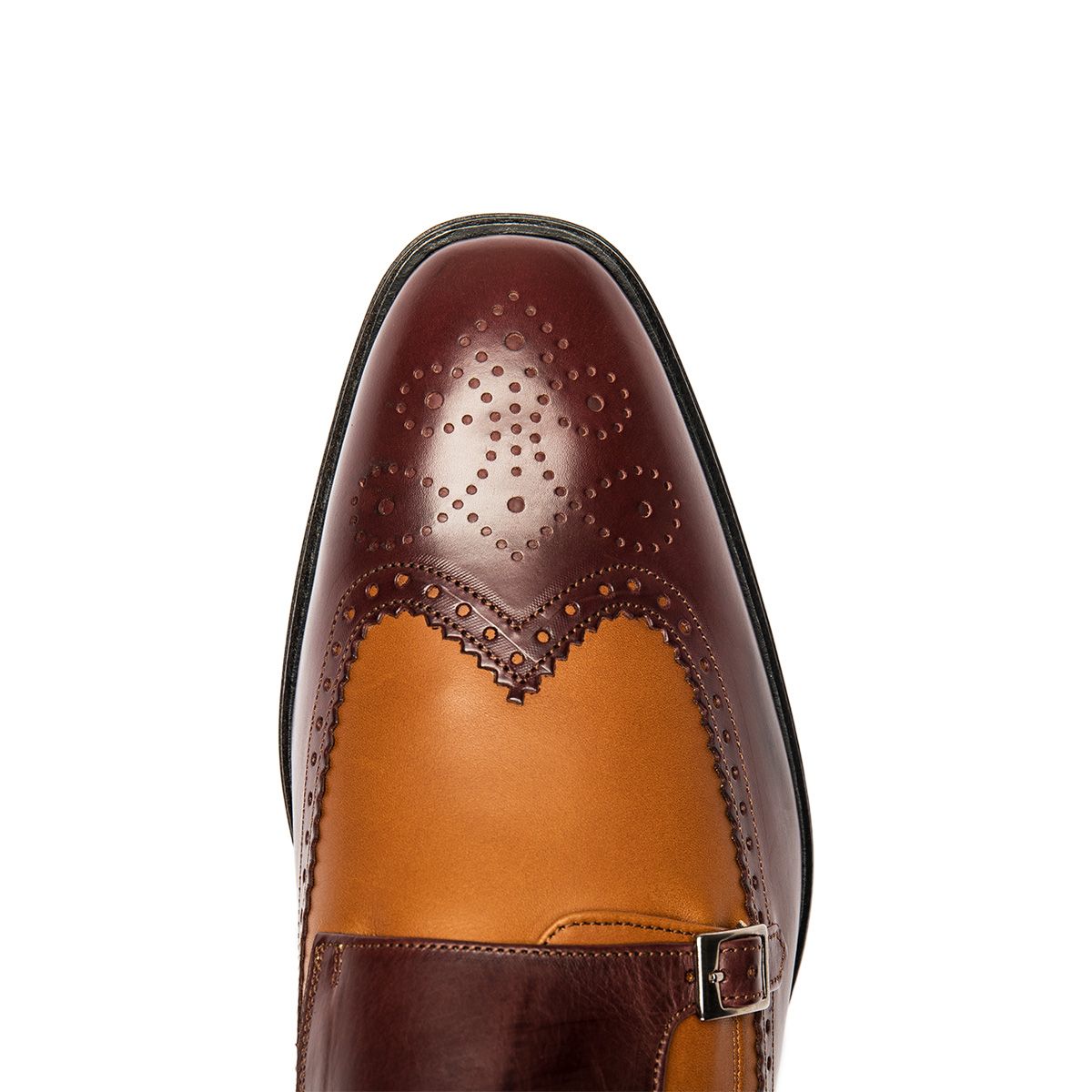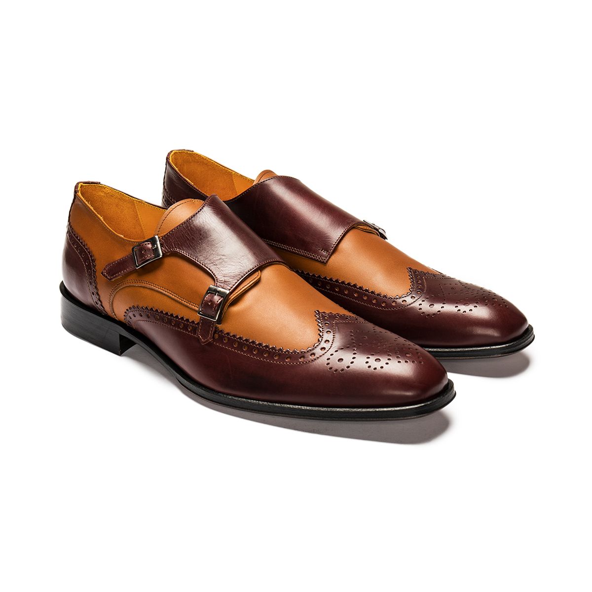 Tan Brown Wing Tip Double Buckle Monk Strap Brogue Toe Genuine Leather Handmade Shoes