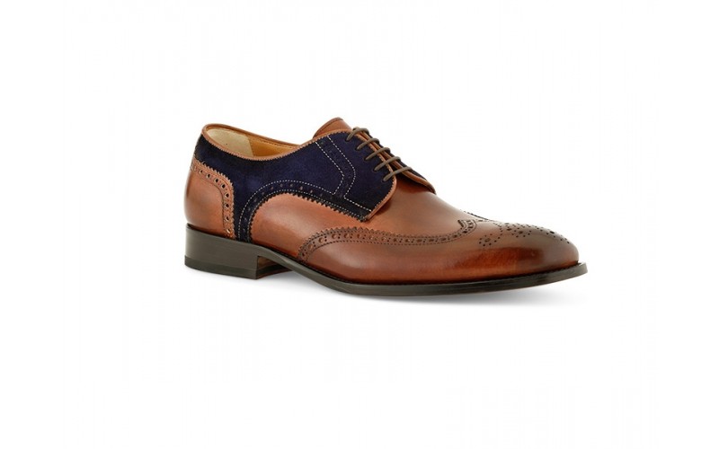 Suede Oxford Blue Brown Genuine Leather Brogue Toe Wing Tip Men's Handmade Shoes
