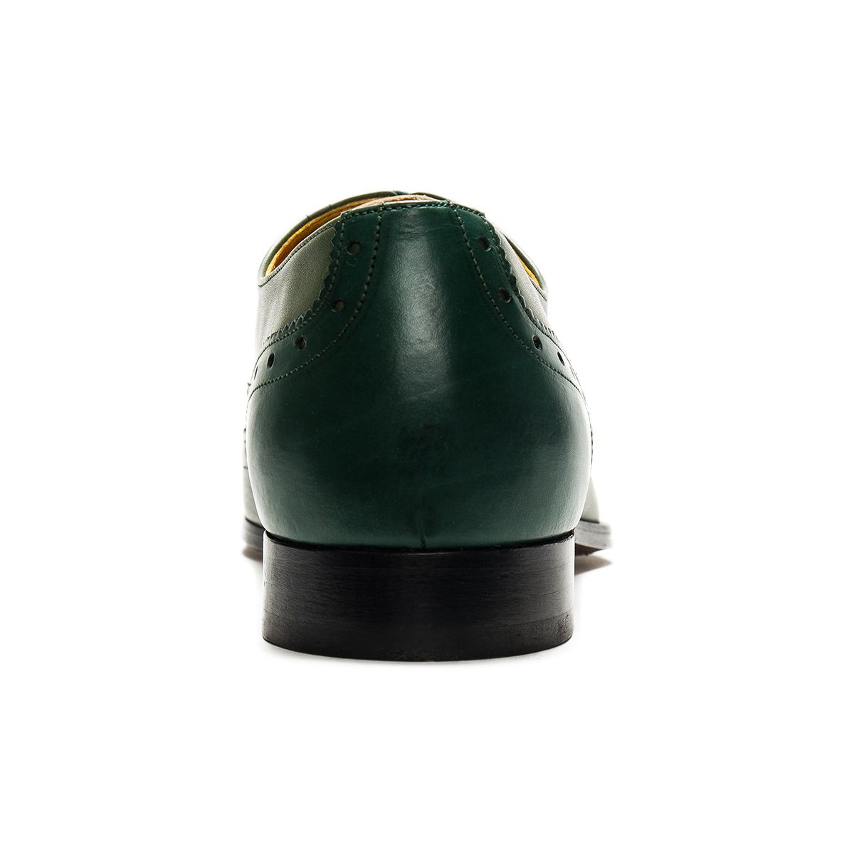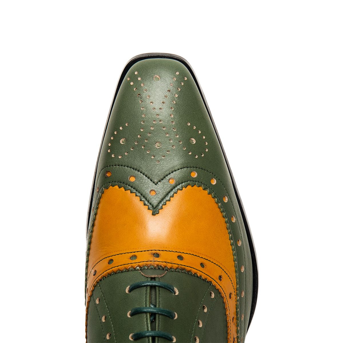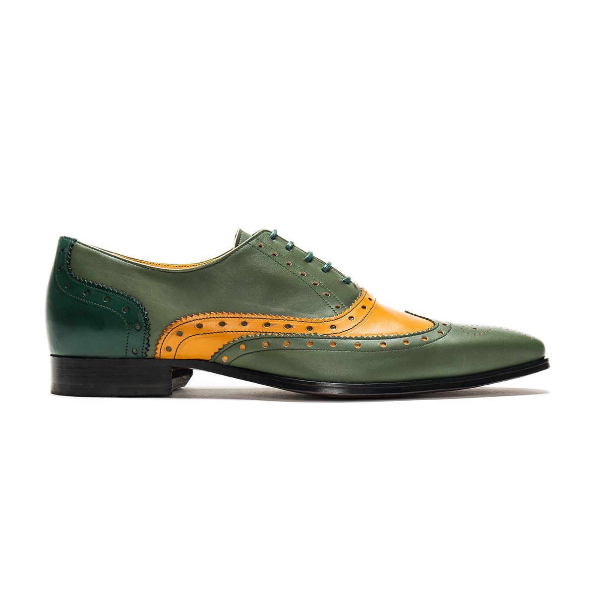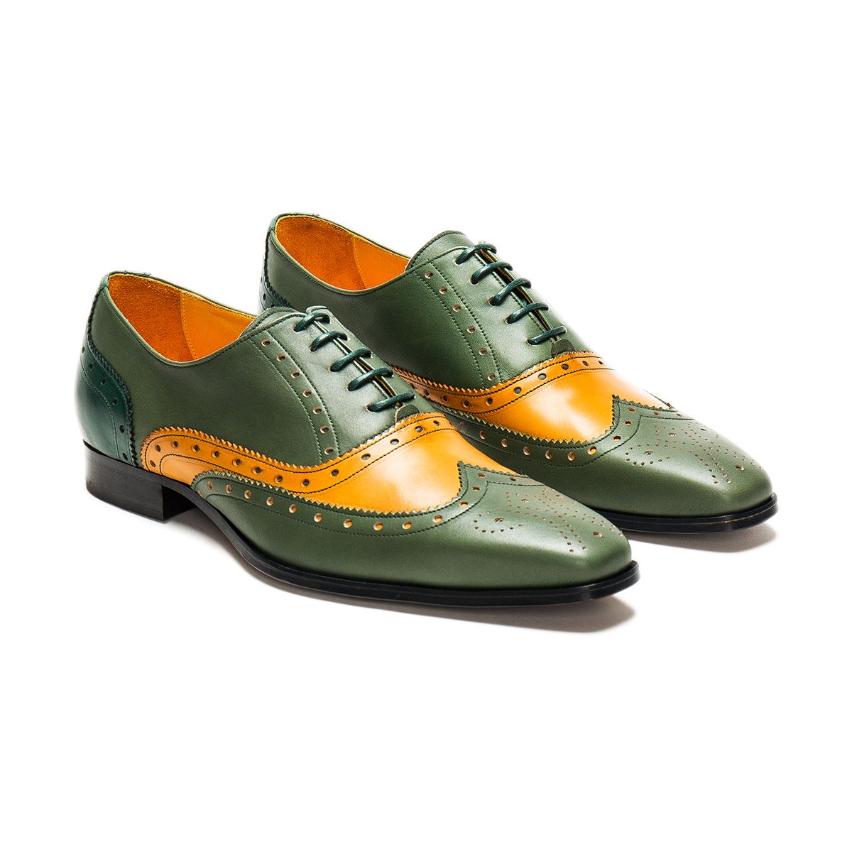 Oxford Two Tone Tan Green Wing Tip Full Brogue Toe Real Cowhide Leather Lace Up Footwear Shoes