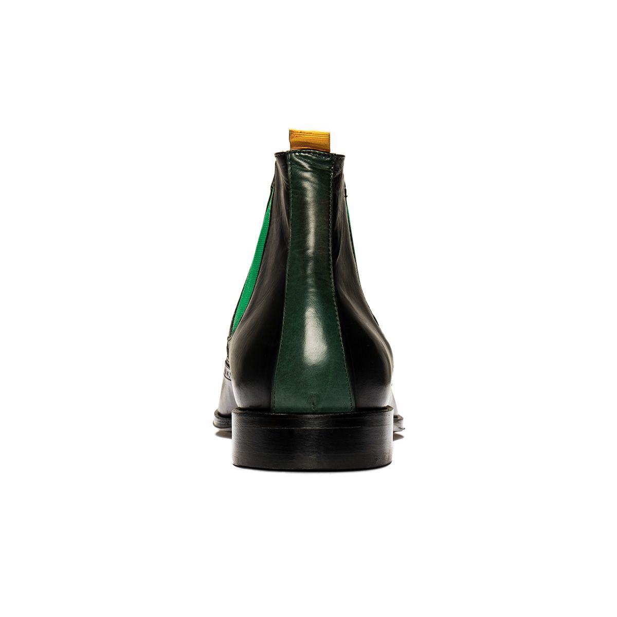 Black Green Contrast Chelsea Jumper Slip On Wing Tip Patent Real Leather Brogue Toe High Ankle Boots