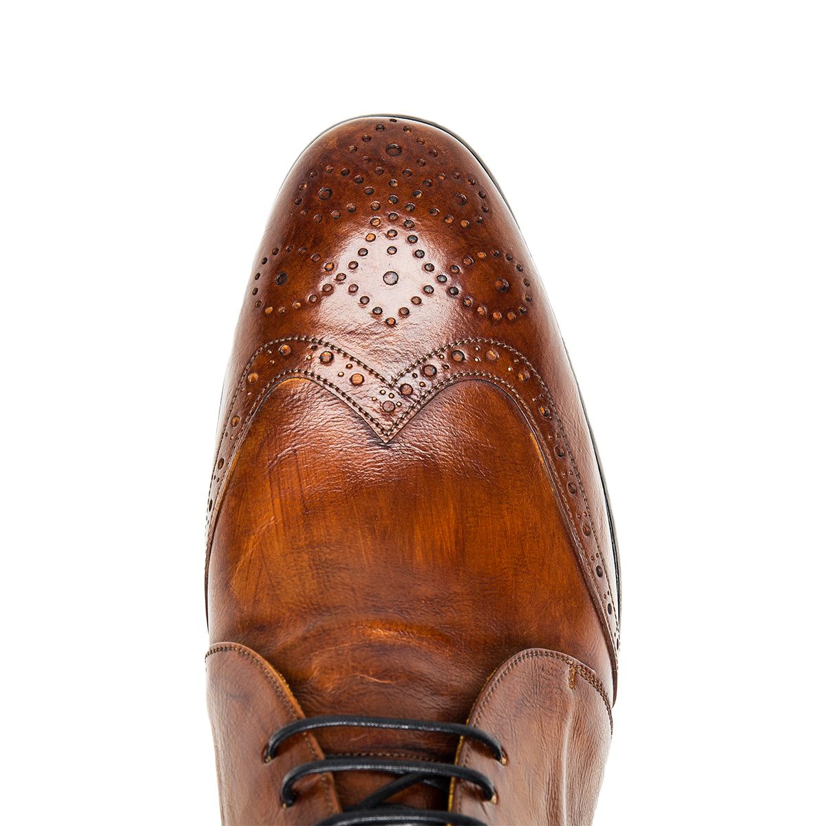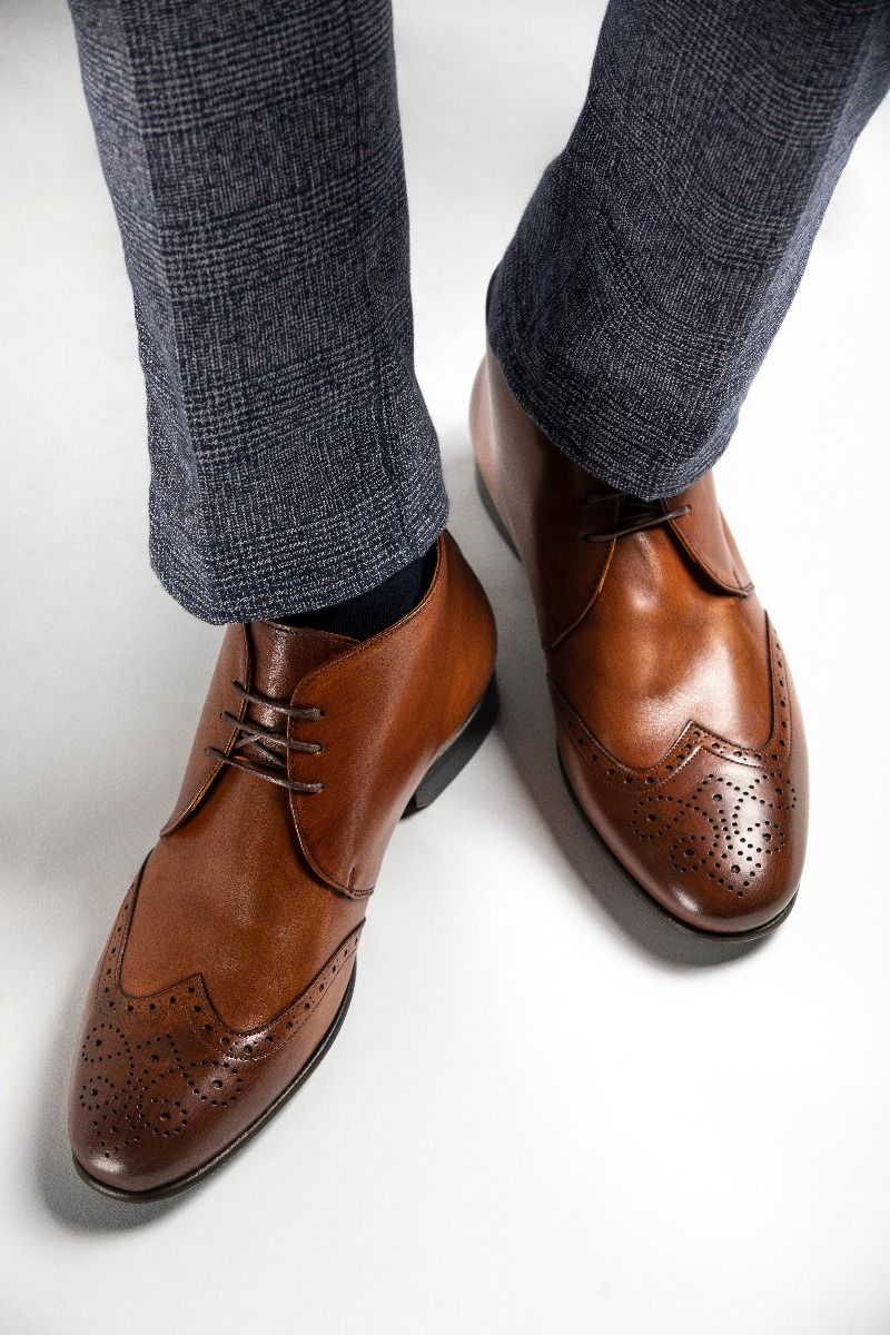 Ankle High Brown Chukka Full Brogue Toe Wing Tip Genuine Leather Lace Up Handmade Boots