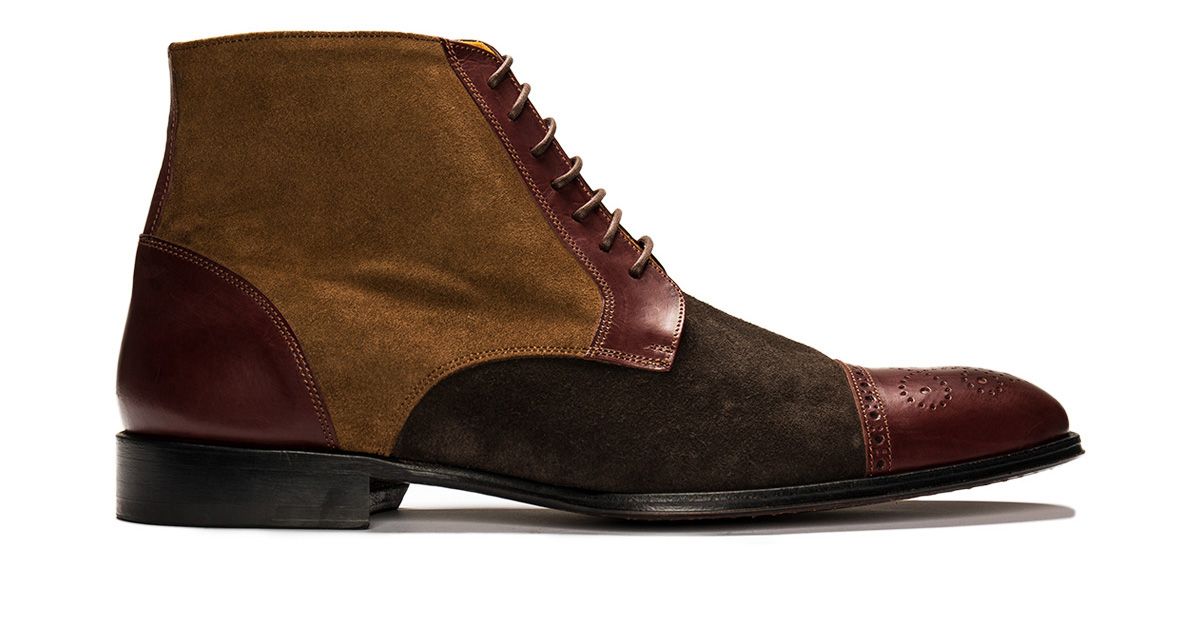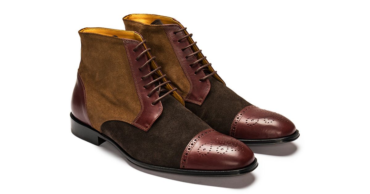 High Ankle Multi Color Suede Real Leather Brogue Cap Toe Handmade Lace Up Black Sole Boots