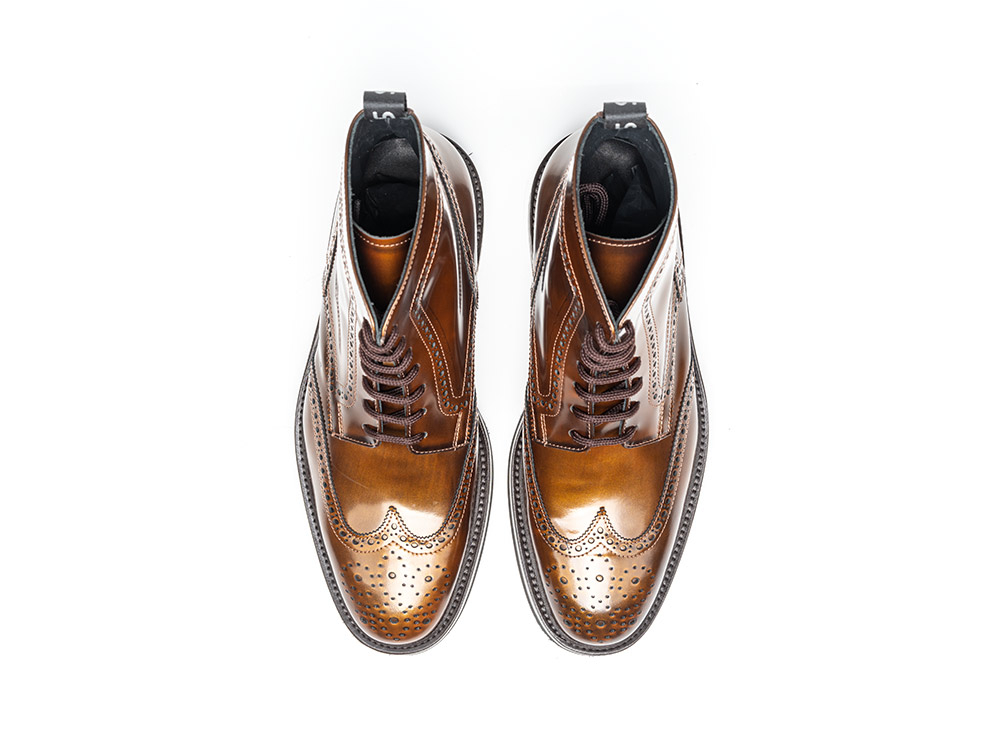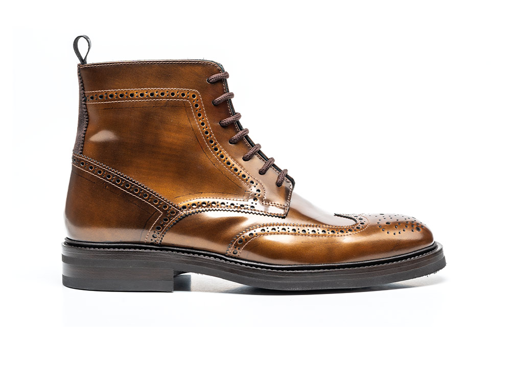 High Ankle Genuine Patent Leather Brown Wing Tip Full Brogue Toe Handmade Lace Up Boots
