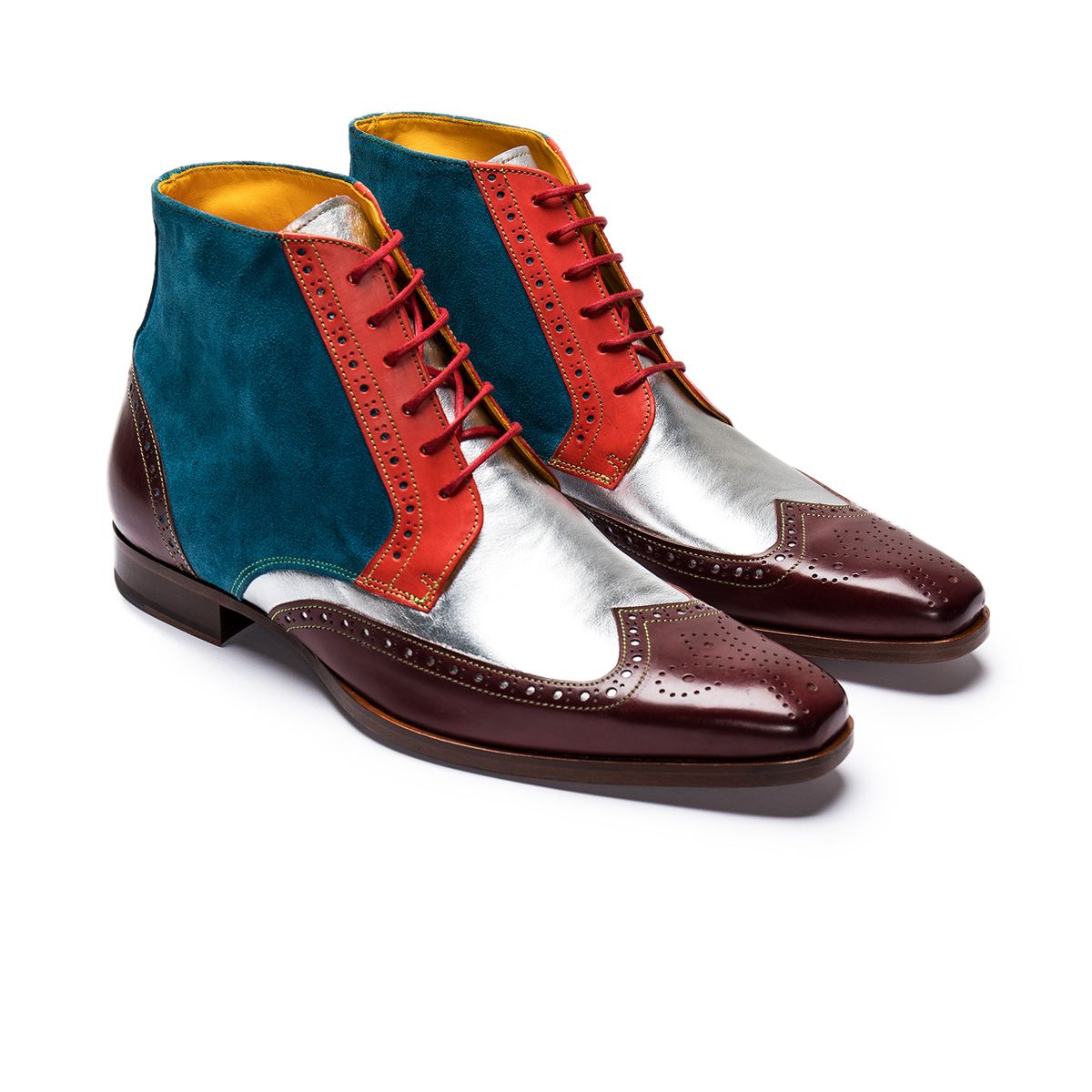 Multi Color Men Wing Tip Brogue Toe Suede Genuine Leather Handmade High Ankle Boots