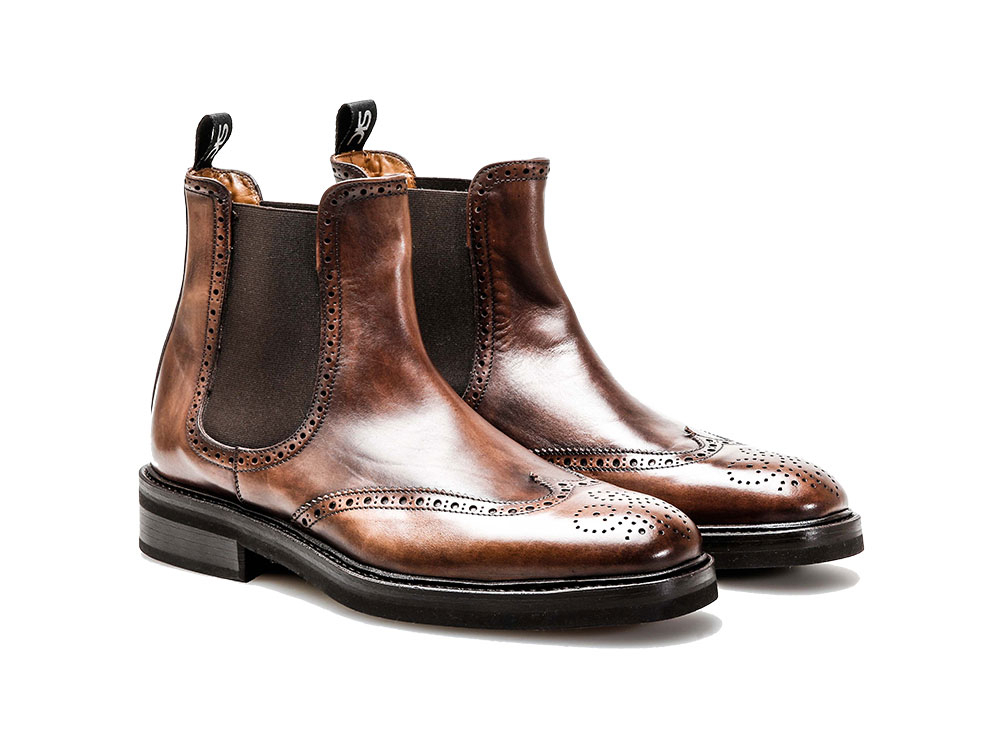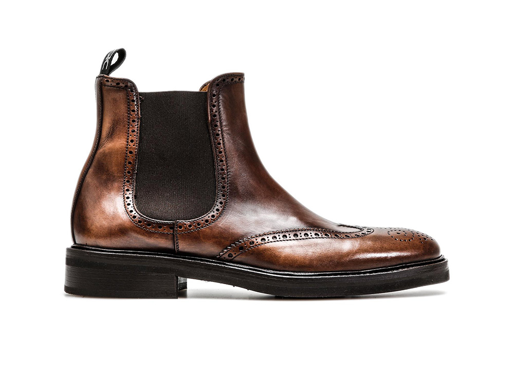 Chelsea Jumper Slip On Patent Real Leather Brown Wing Tip Brogue Toe High Ankle Fashion Boots