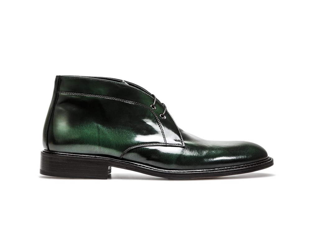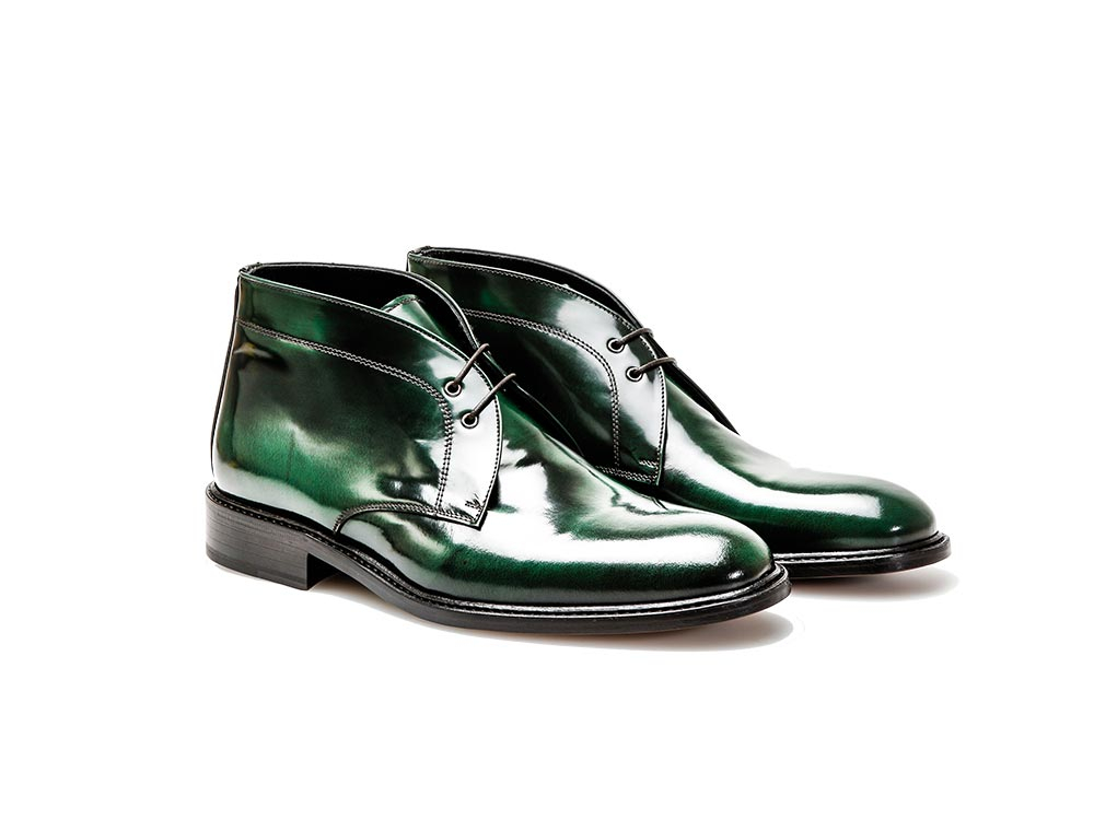 Green Chukka Patent Real Leather High Ankle Lace Up Black Sole Derby Toe Handmade Boots