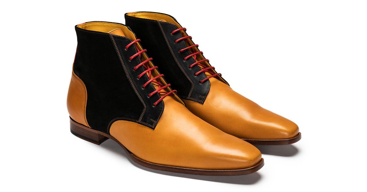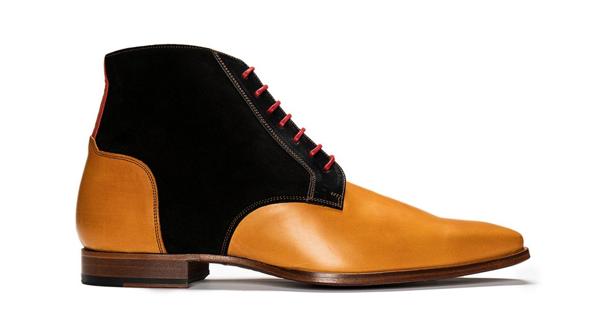Tan Black High Ankle Derby Toe Genuine Leather Red Laces Fashion Handcrafted Spectator Boots