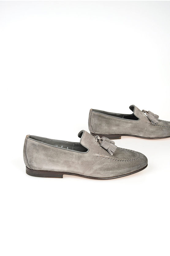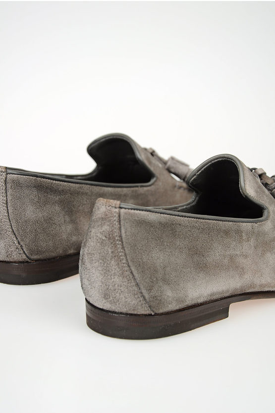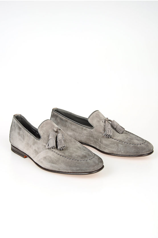 Gray Suede Tassel Loafer Slip On Rounded Derby Toe Genuine Leather Matching Sole Handmade Shoes
