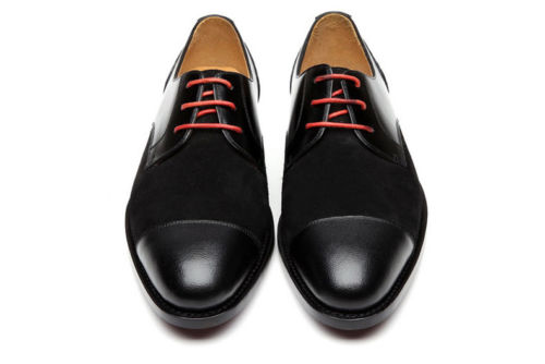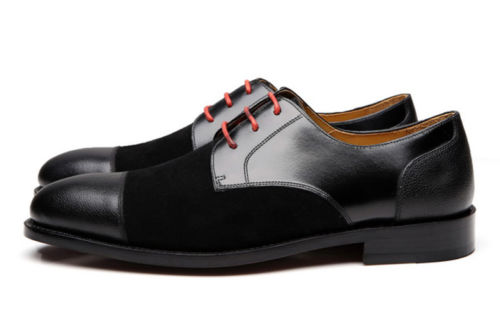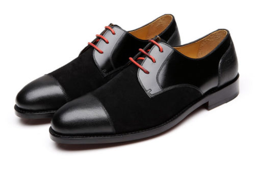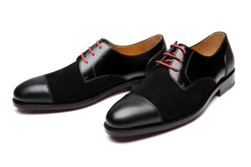 Oxford Black Suede Genuine Leather Red Laces Derby Cap Toe Handmade Fashion Shoes