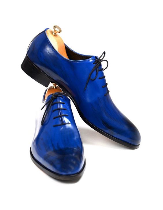 Royal Blue Vintage Leather Burnished Derby Toe Lace Up Handmade Black Sole Spectator Shoes