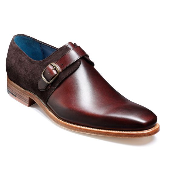 Burgundy Single Buckle Strap Monk Suede Brown Genuine Leather Derby Toe Handmade Tan Sole Shoes
