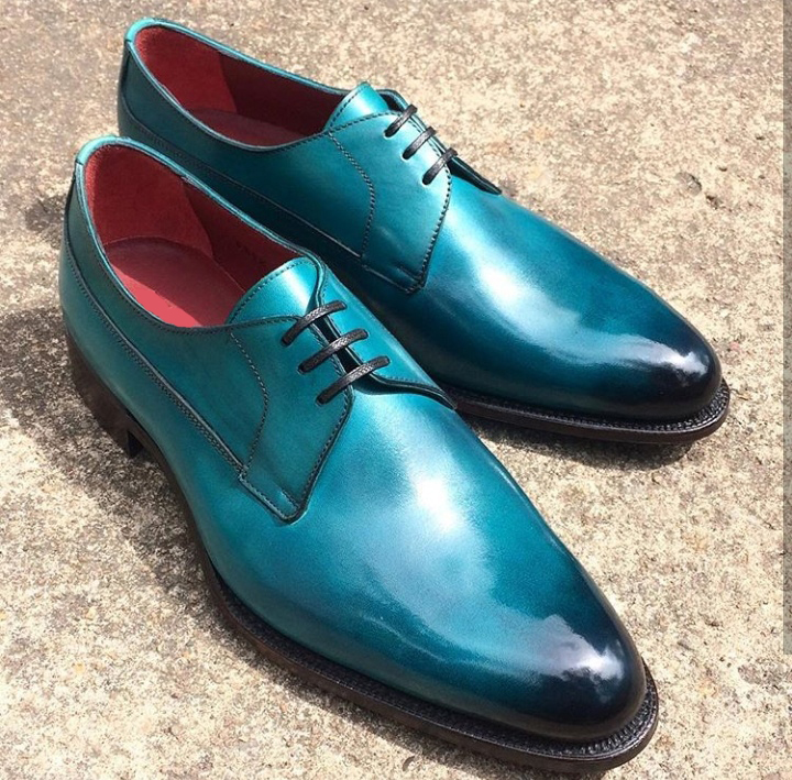 Blue Formal Oxford Real Cowhide Leather Derby Toe Handmade Lace Up Men Shoes