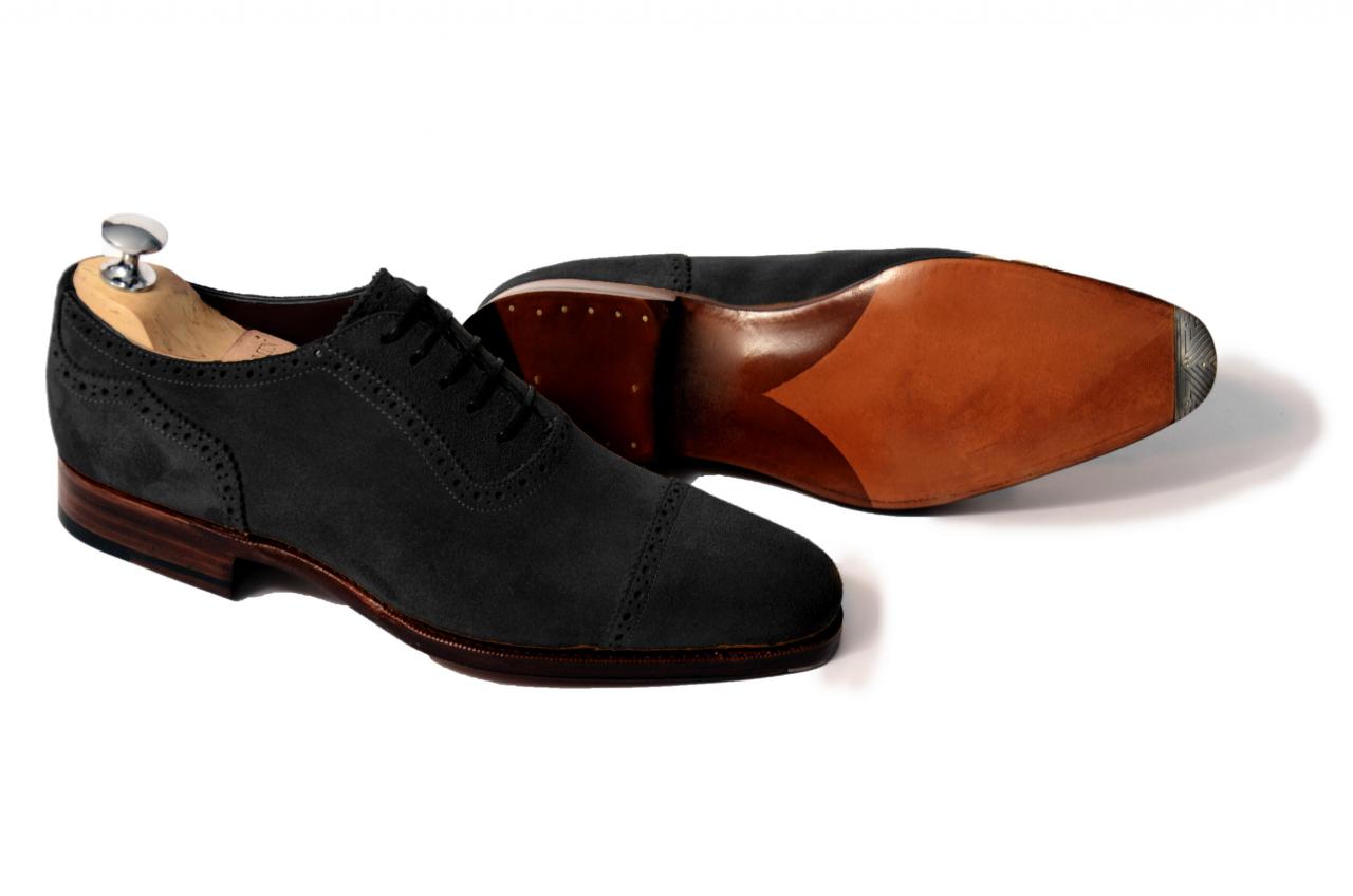Oxford Suede Black Genuine Leather Lace Up Derby Cap Toe Handmade Tan Sole Shoes