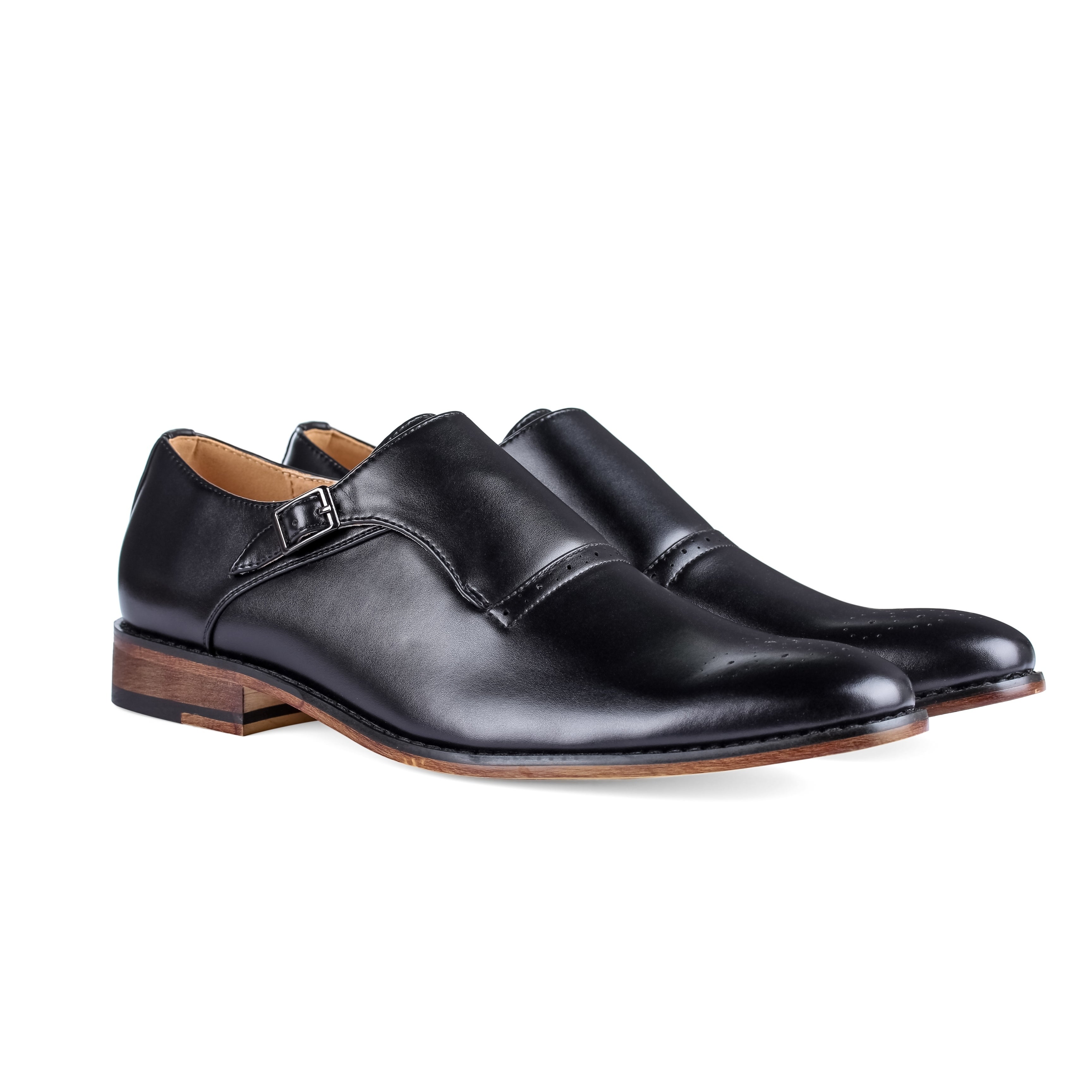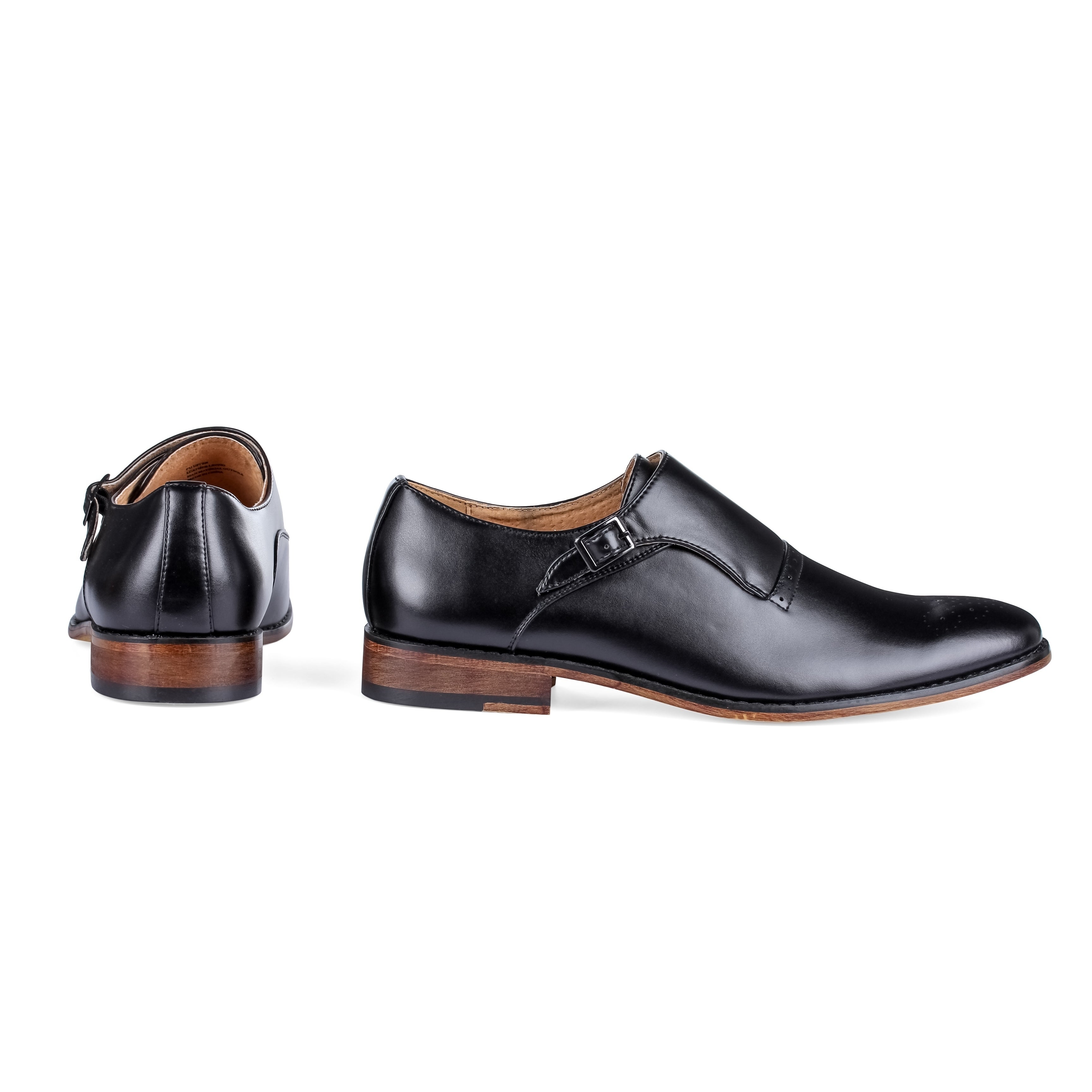 Single Buckle Strap Real Leather Black Monk Burnished Medallion Toe Handmade Shoes