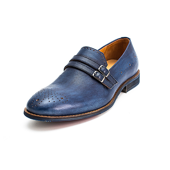 Monk Blue Real Leather Double Buckle Strap Full Brogue Patina Hand Painted Shoes
