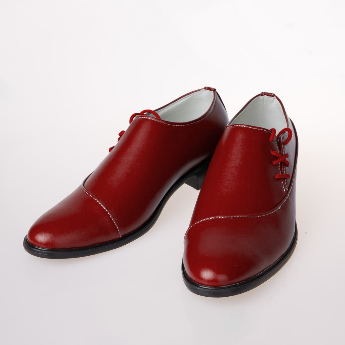 Made To Order Red Vintage Leather Rounded Derby Toe Handmade Lace Up Black Sole Shoes