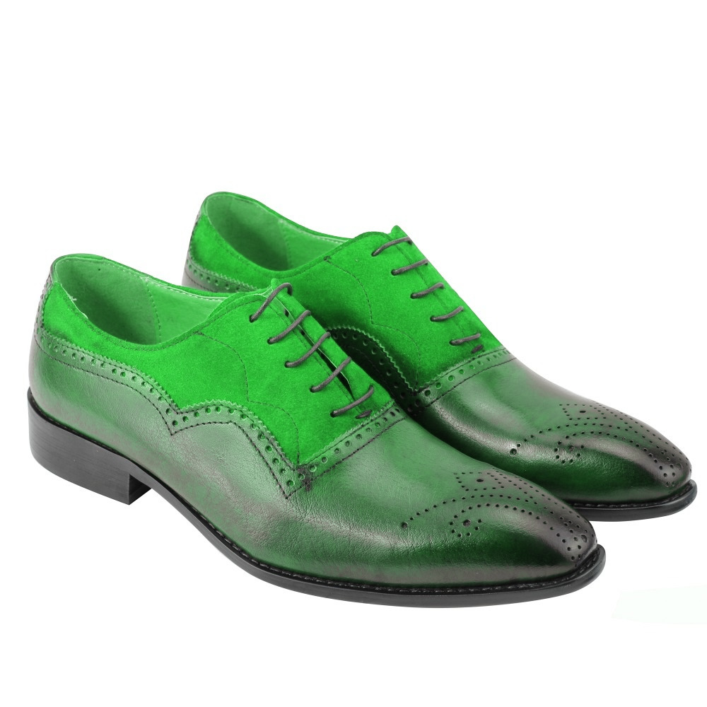 Oxford Green Genuine Suede Leather Lace Up Brogue Toe Handmade Men Shoes