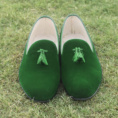 Tassel Loafer Slip On Suede Green Genuine Leather Handmade Fashion Shoes