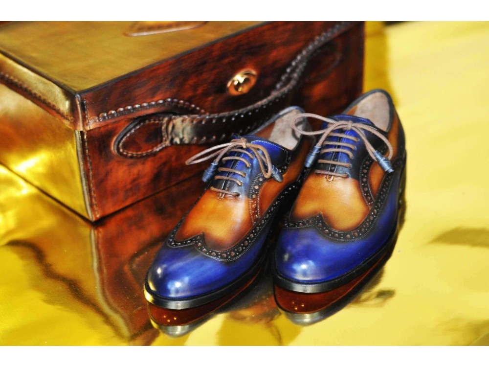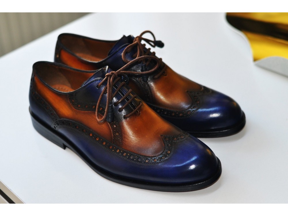 Luxury Multi Color Genuine Leather Wing Tip Derby Toe Handmade Lace Up Shoes