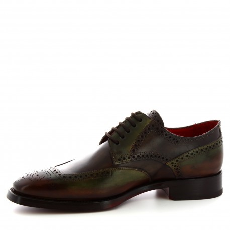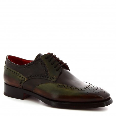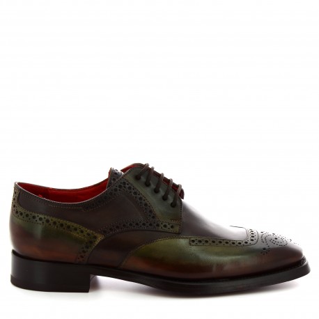 Multi Color Patina Hand Painted Genuine Leather Brogue Toe Lace Up Men Shoes