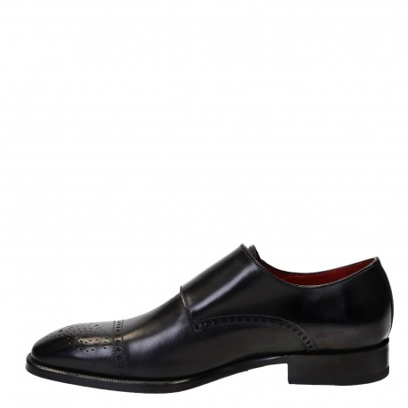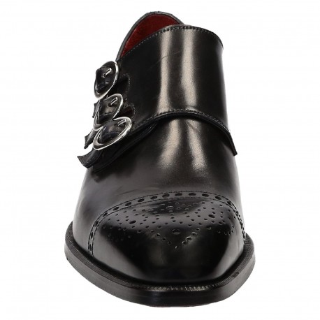 Black Monk Triple Buckle Strap Rounded Brogue Cap Toe Genuine Leather Handmade Fashion Shoes
