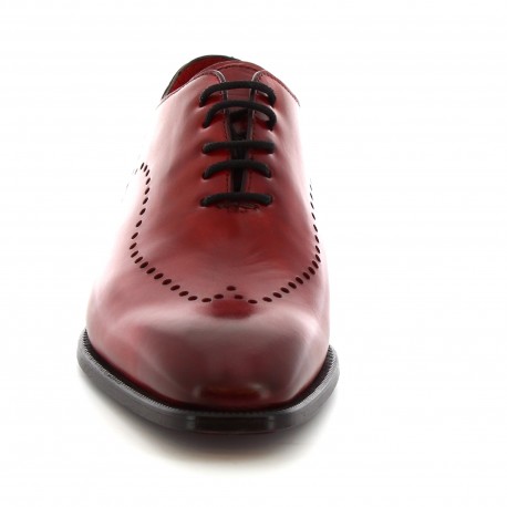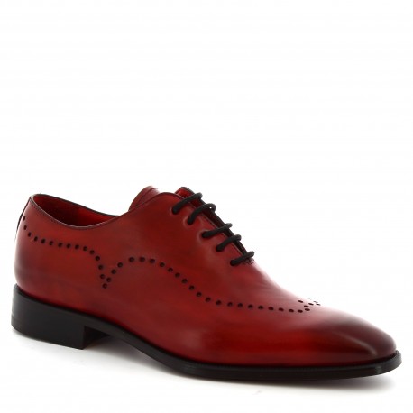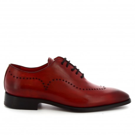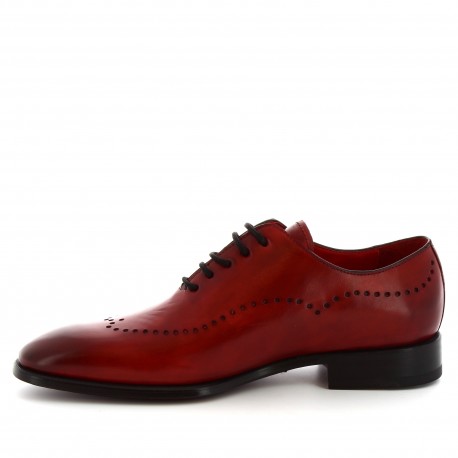 Burgundy Wing Tip Vintage Leather Burnished Derby Toe Punching Holes Lace Up Handmade Shoes