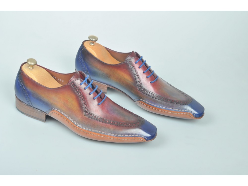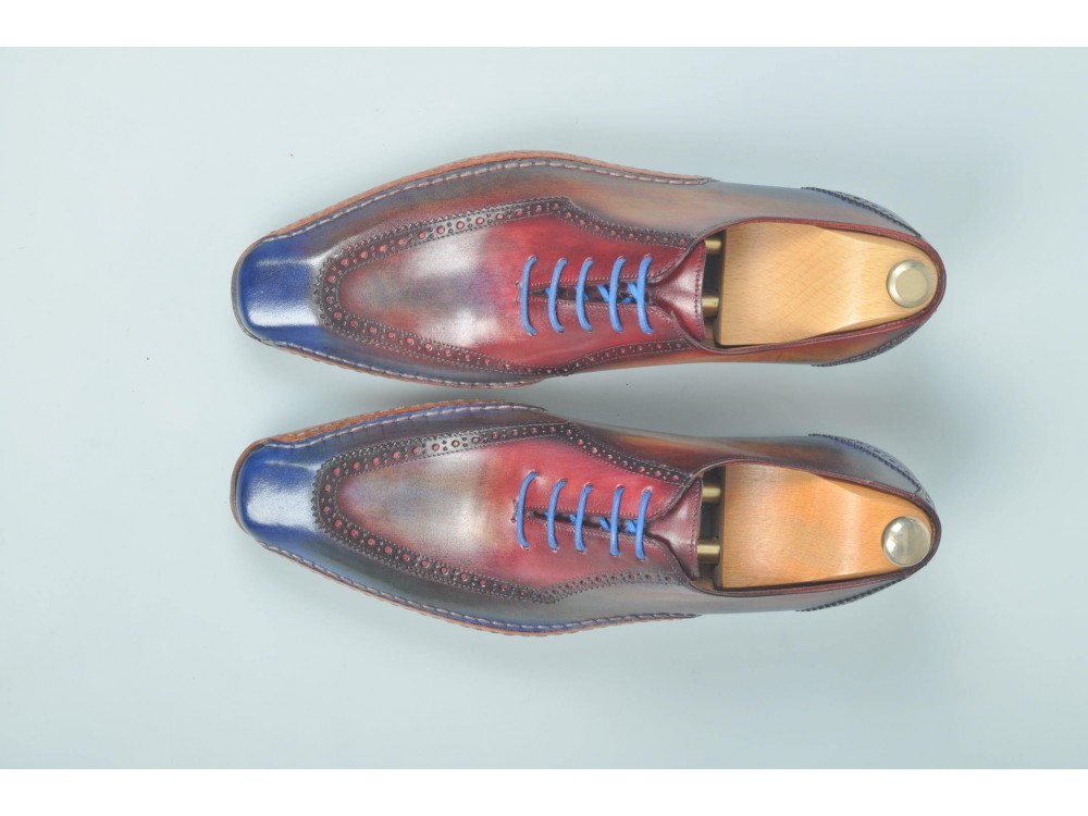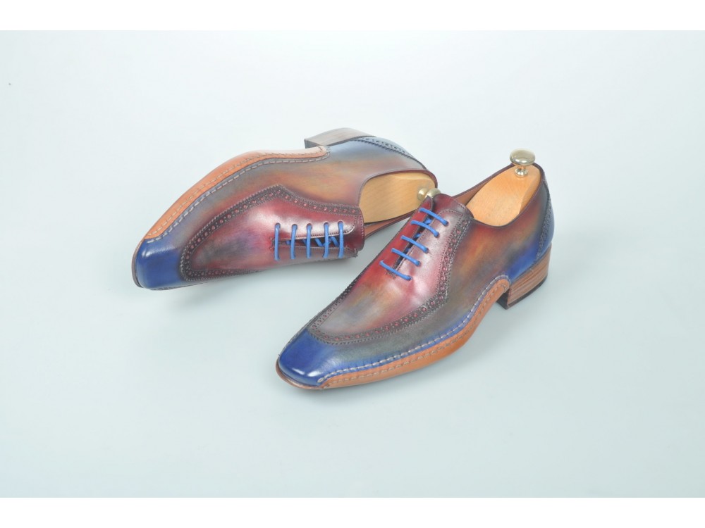 Multi Color Oxford Patina Hand Painted Rounded Derby Toe Lace Up Genuine Leather Handmade Shoes