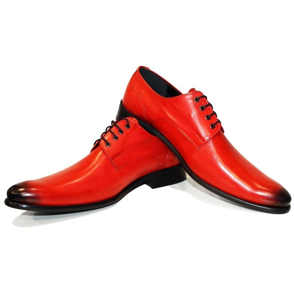 Red Oxford Shiny Vintage Leather Rounded Burnished Derby Toe Lace Up Handmade Black Sole Shoes