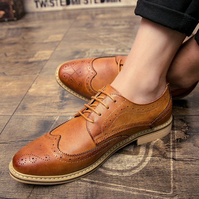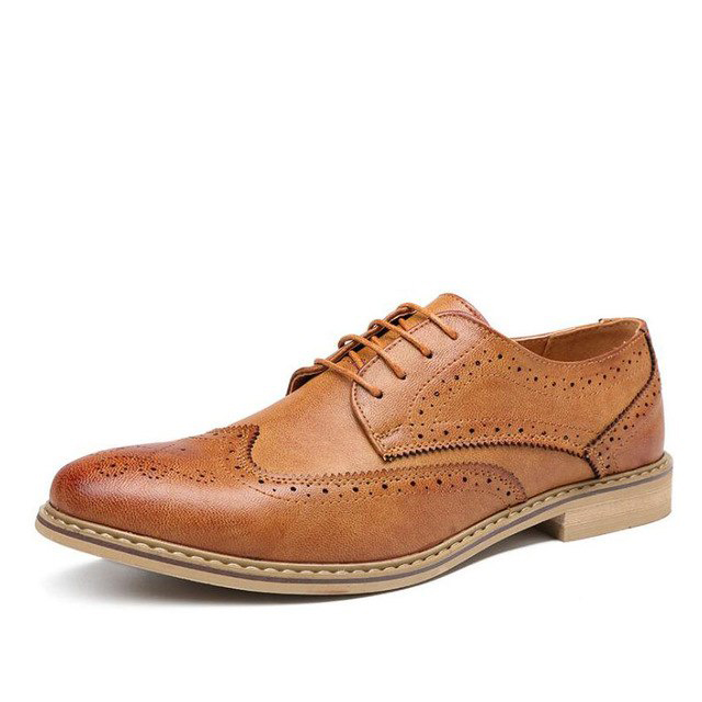 Wing Tip Oxford Genuine Leather Brogue Toe Tan Sole Lace Up Handmade Shoes