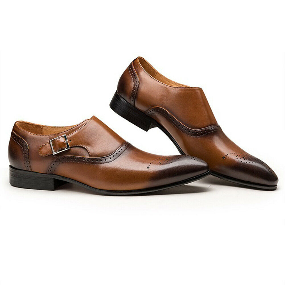 Monk Brown Genuine Leather Single Buckle Strap Burnished Medallion Toe Handmade Shoes