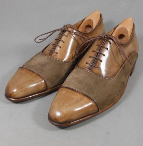 Elegant Oxford Tan Color Suede Genuine Leather Derby Cap Toe Lace Up Handcrafted Fashion Shoes