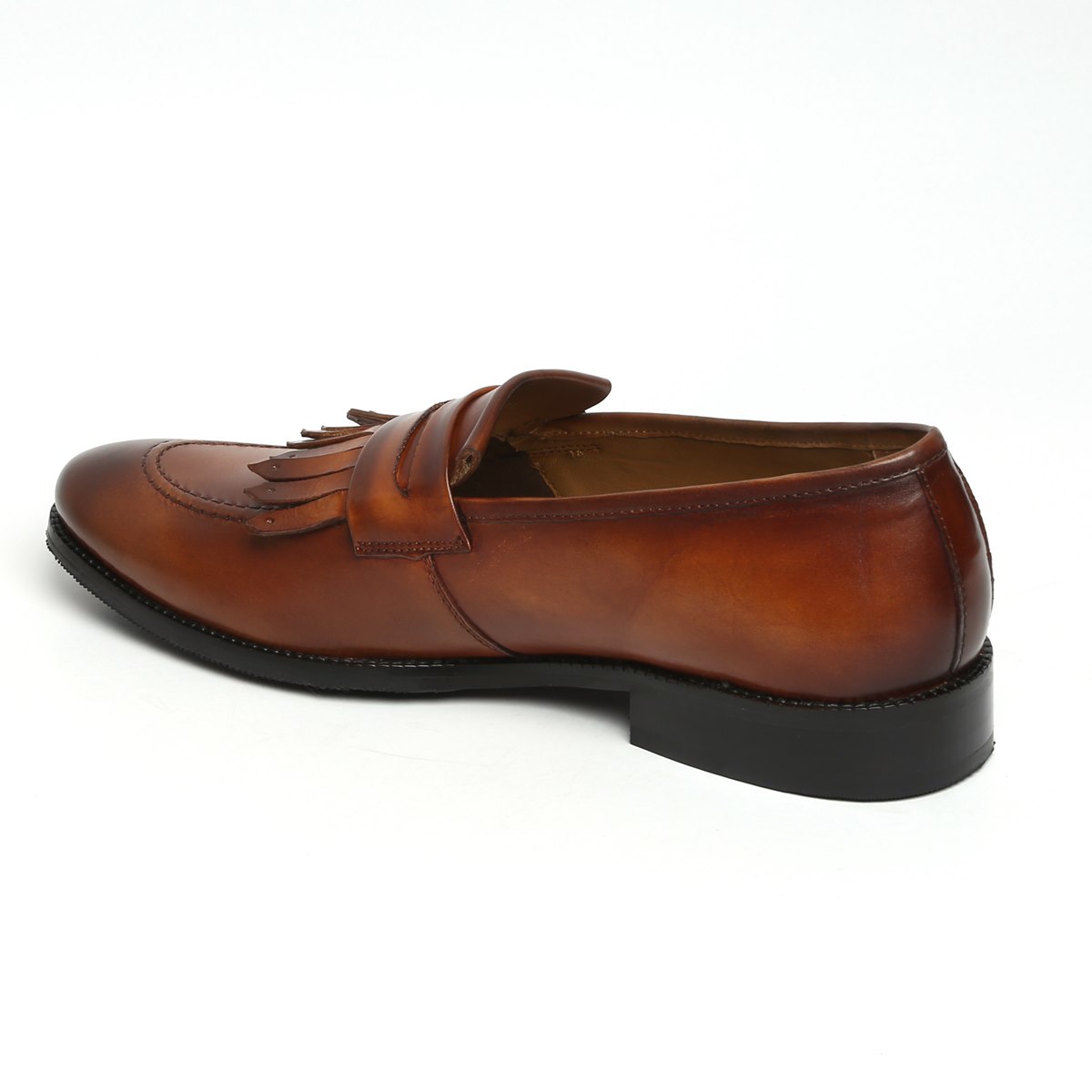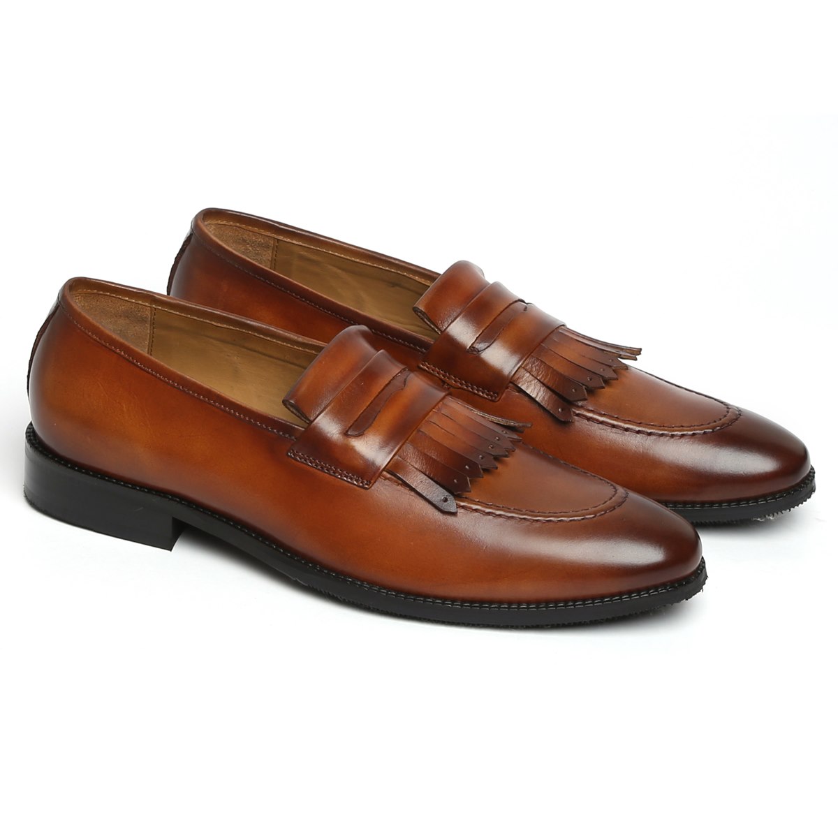 Penny Moccasin Loafer Slip On Brown Fringed Real Leather Rounded Apron Toe Handmade Shoes