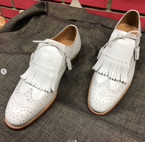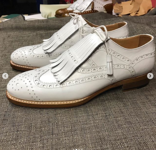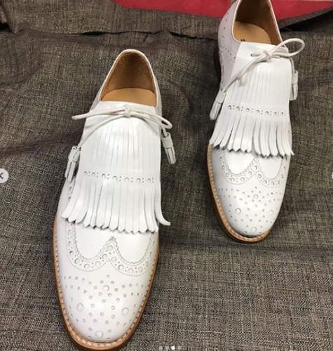 Wing Tip Fringed White Tassel Loafer Slip on Genuine Leather Full Brogue Toe Handmade Shoes