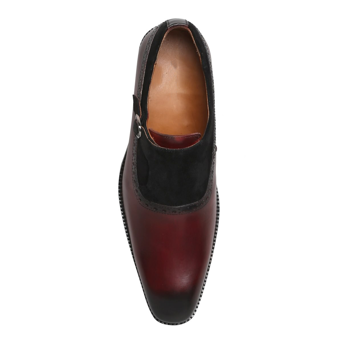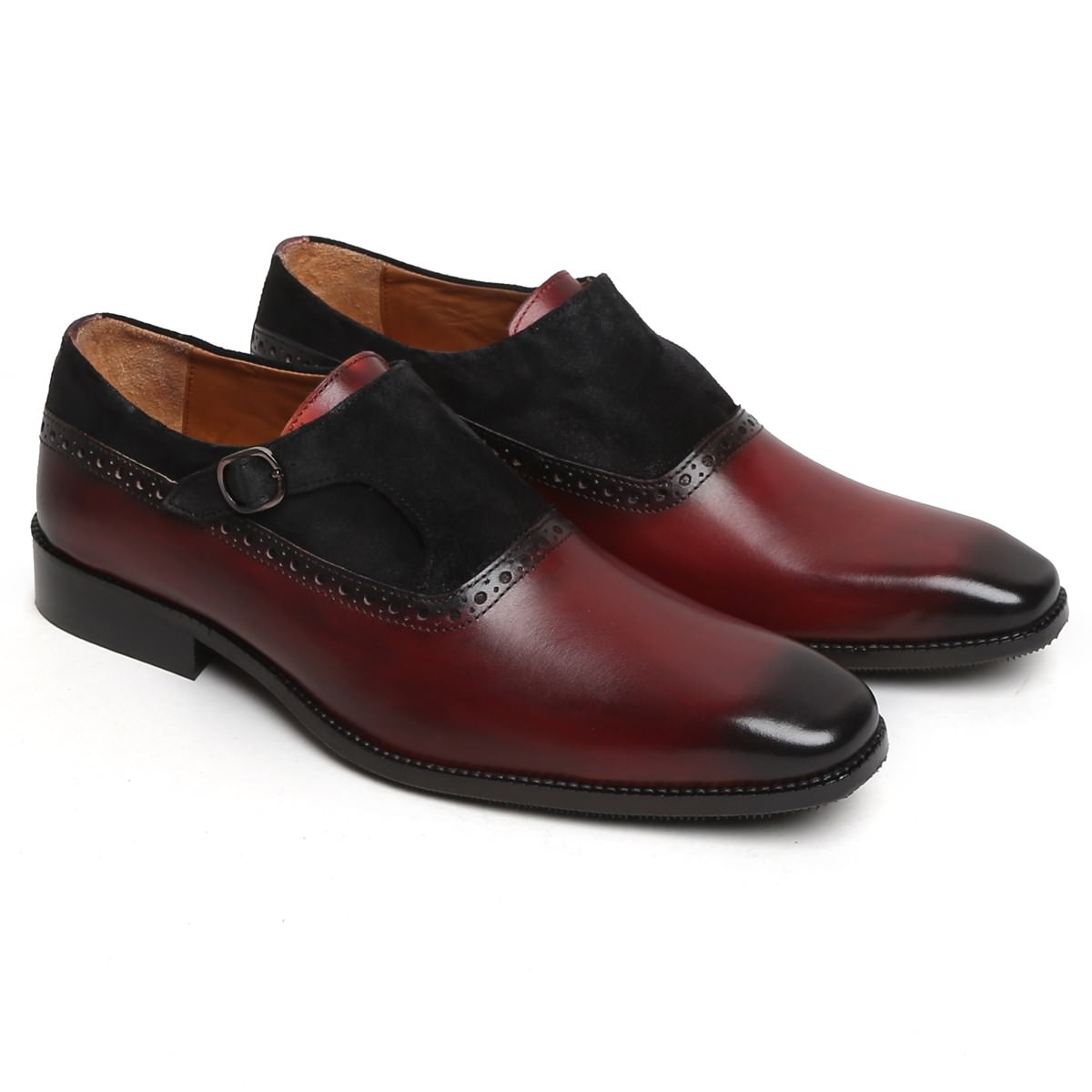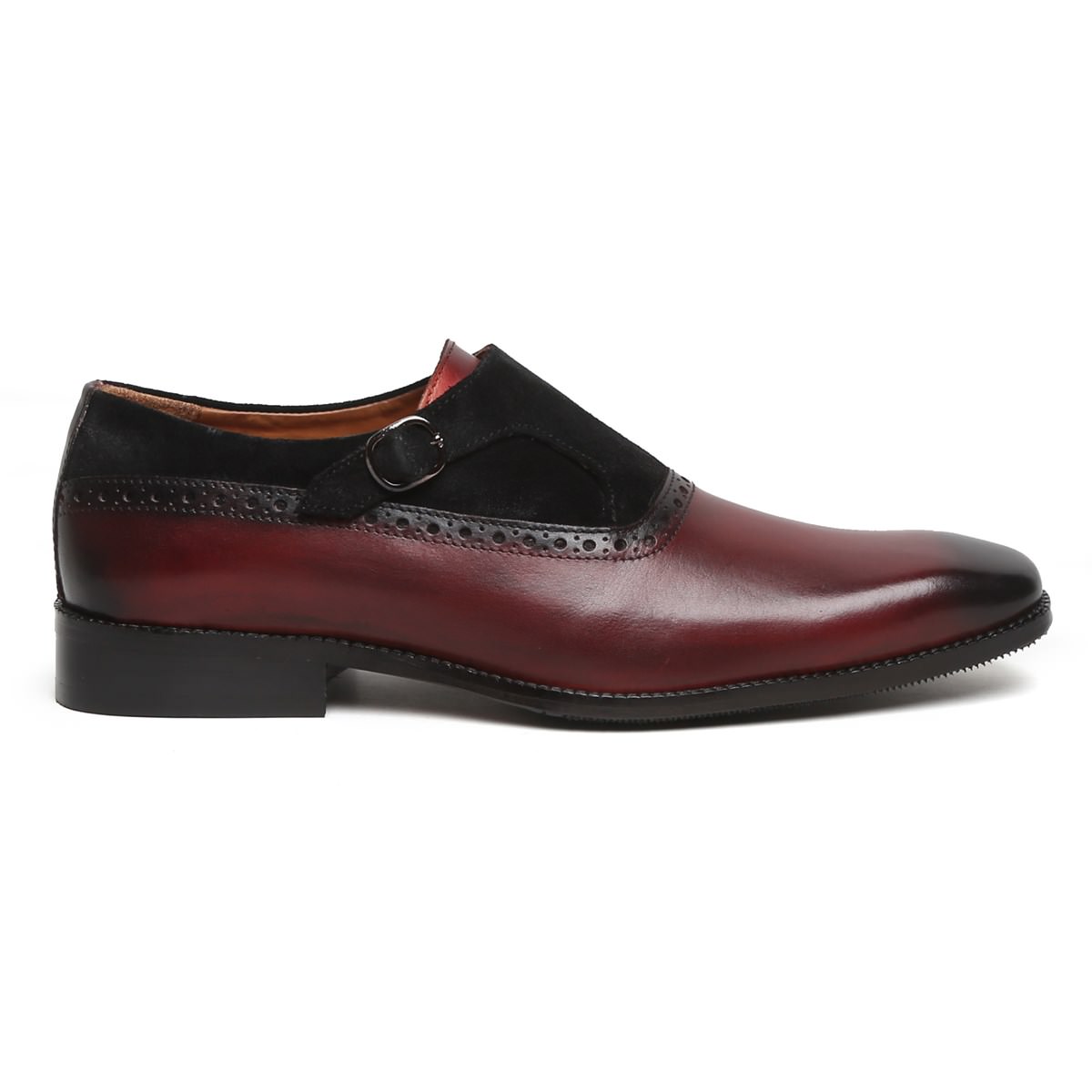 Suede Black Burgundy Genuine Leather Single Buckle Monk Strap Burnished Derby Toe Shoes