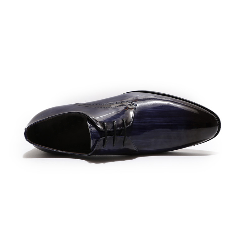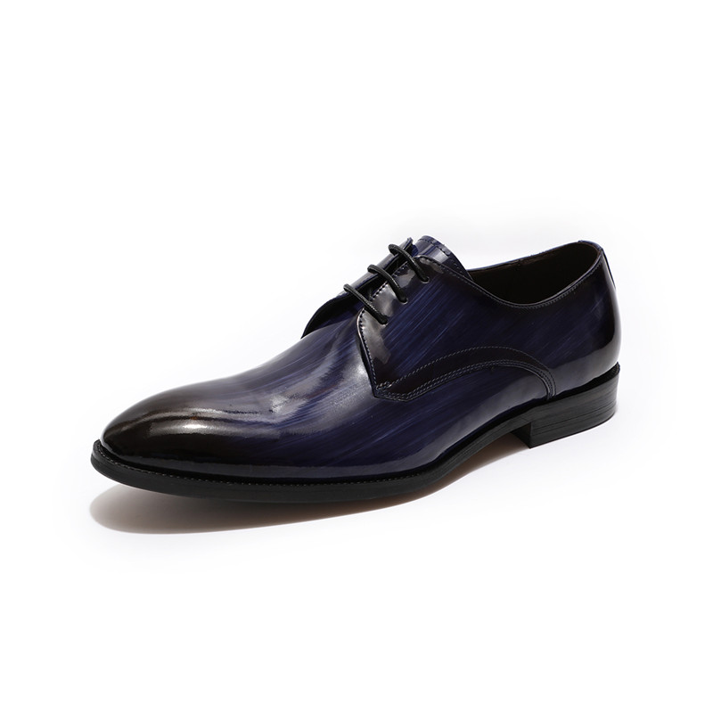 Patina Hand Painted Blue Patent Genuine Leather Burnished Derby Toe Lace Up Handmade Shoes