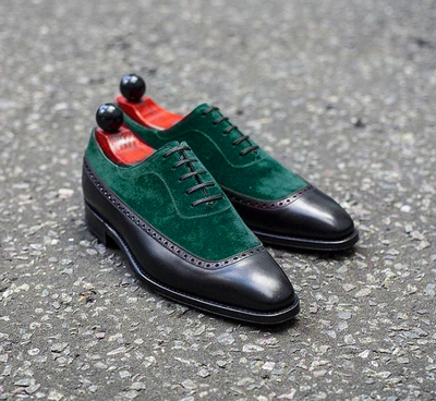 Formal Oxford Suede Green Black Genuine Leather Handcrafted Derby Toe Men Shoes