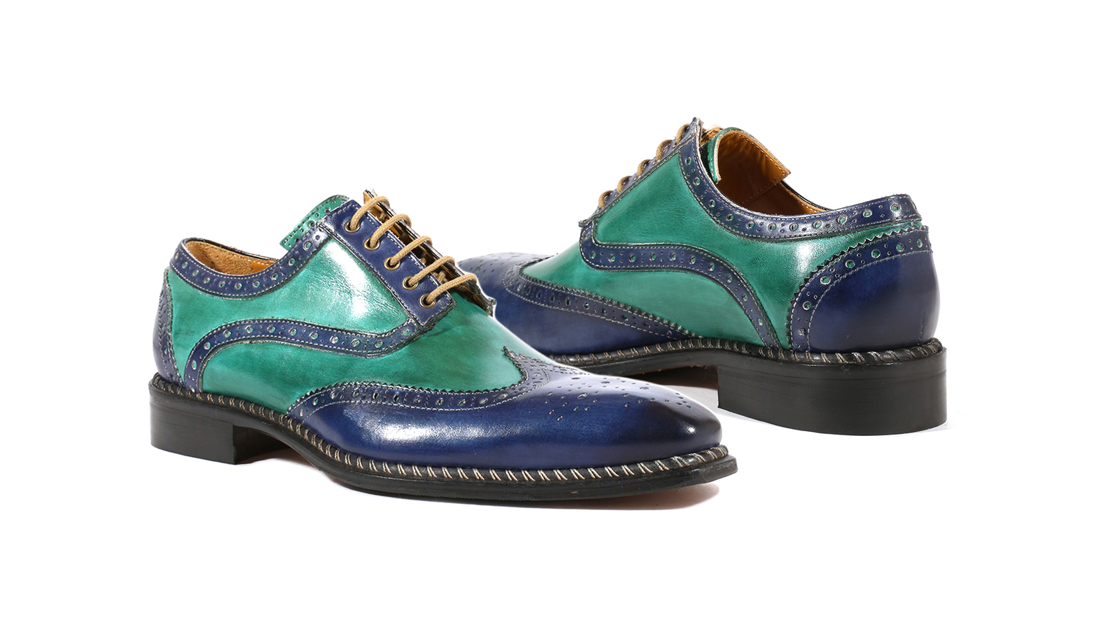 Made To Order Wing Tip Two Tone Genuine Leather Rounded Full Brogue Lace Up Handmade Shoes