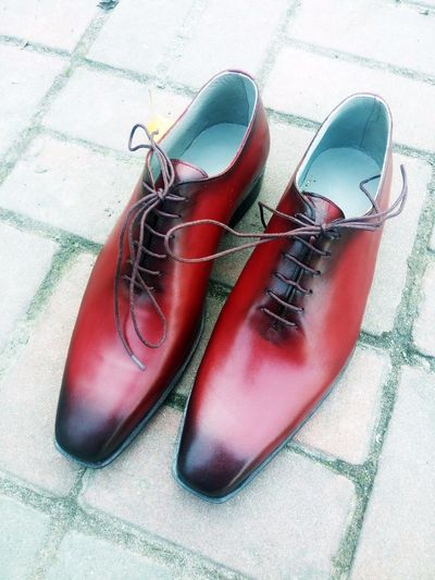 Made To Order Oxford Maroon Rounded Burnished Derby Toe Real Leather Handmade Shoes