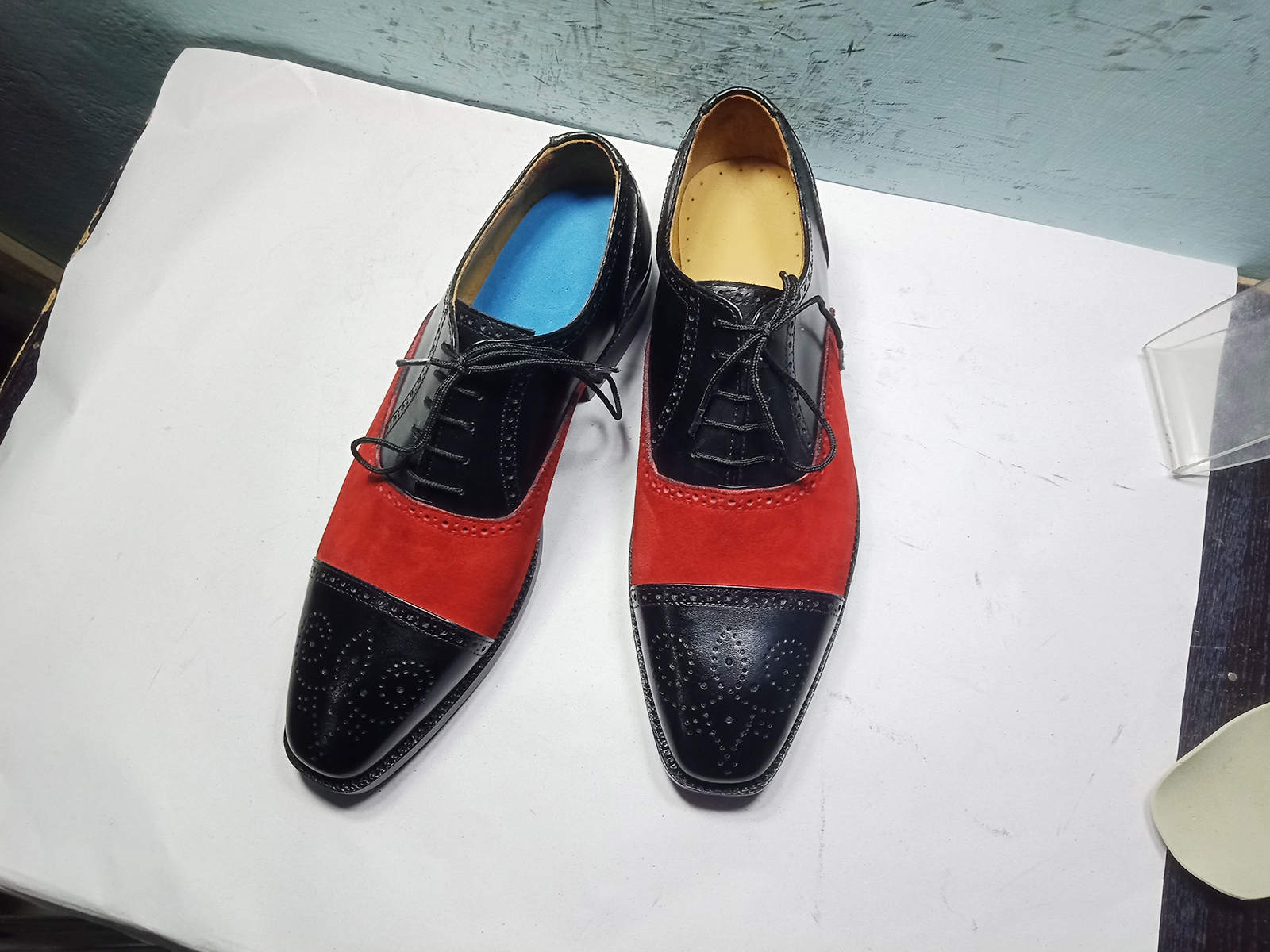Red Black Oxford Vintage Leather Wing Tip Brogue Cap Toe Elegant Lace Up Handmade Shoes