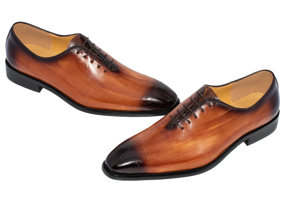 Oxford Brown Real Cowhide Leather Rounded Burnished Medallion Toe Handmade Men Shoes