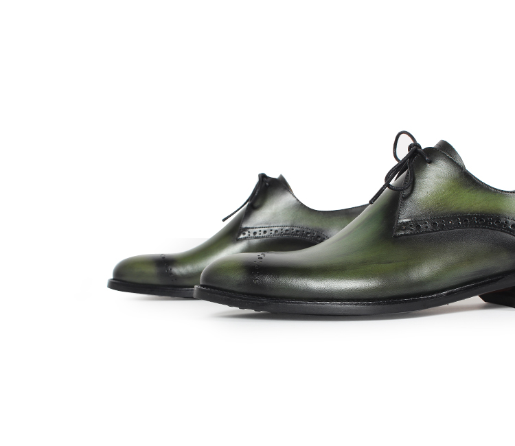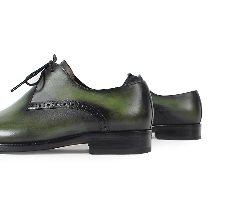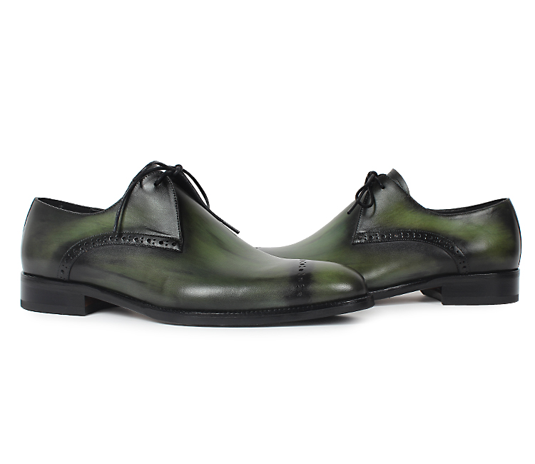 Magnificent Green Patina Hand Painted Real Leather Rounded Derby Toe Handmade Matching Black Sole Shoes