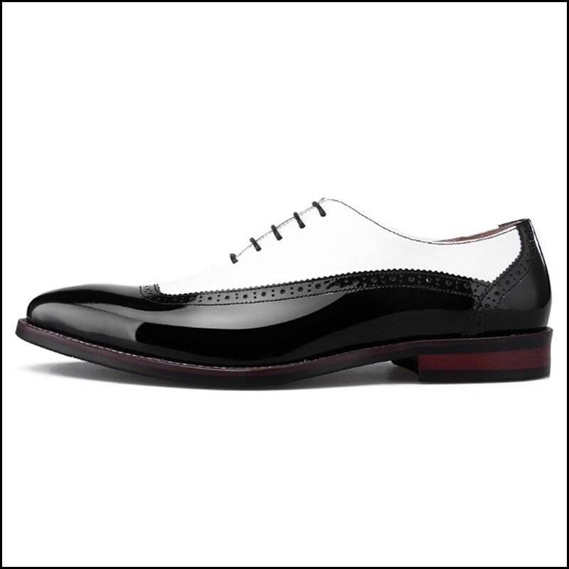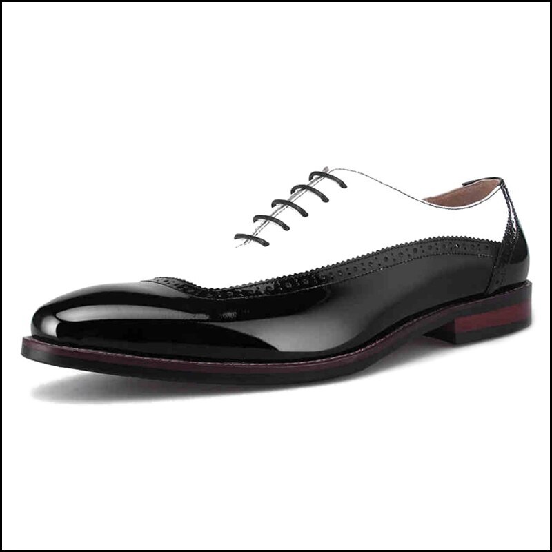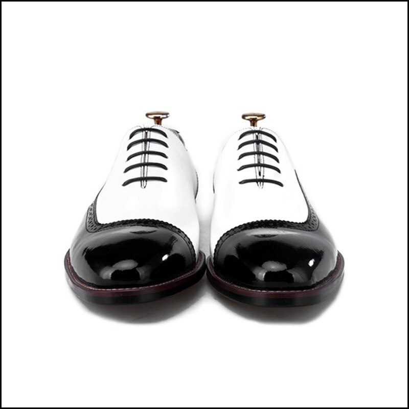 Shiny Black Two Tone Oxford White Genuine Leather Rounded Derby Toe Handmade Fashion Shoes