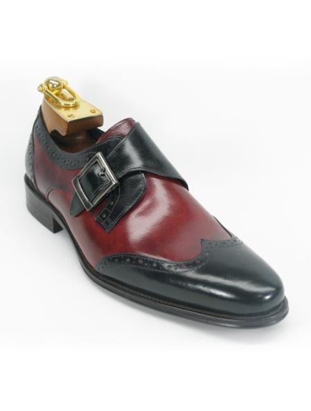 Single Buckle Strap Monk Burgundy Black Cont Genuine Leather Wing Tip Handmade Derby Toe Men Shoes