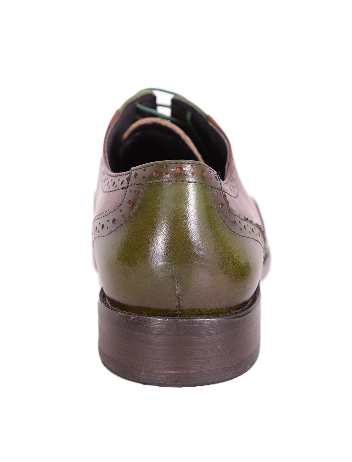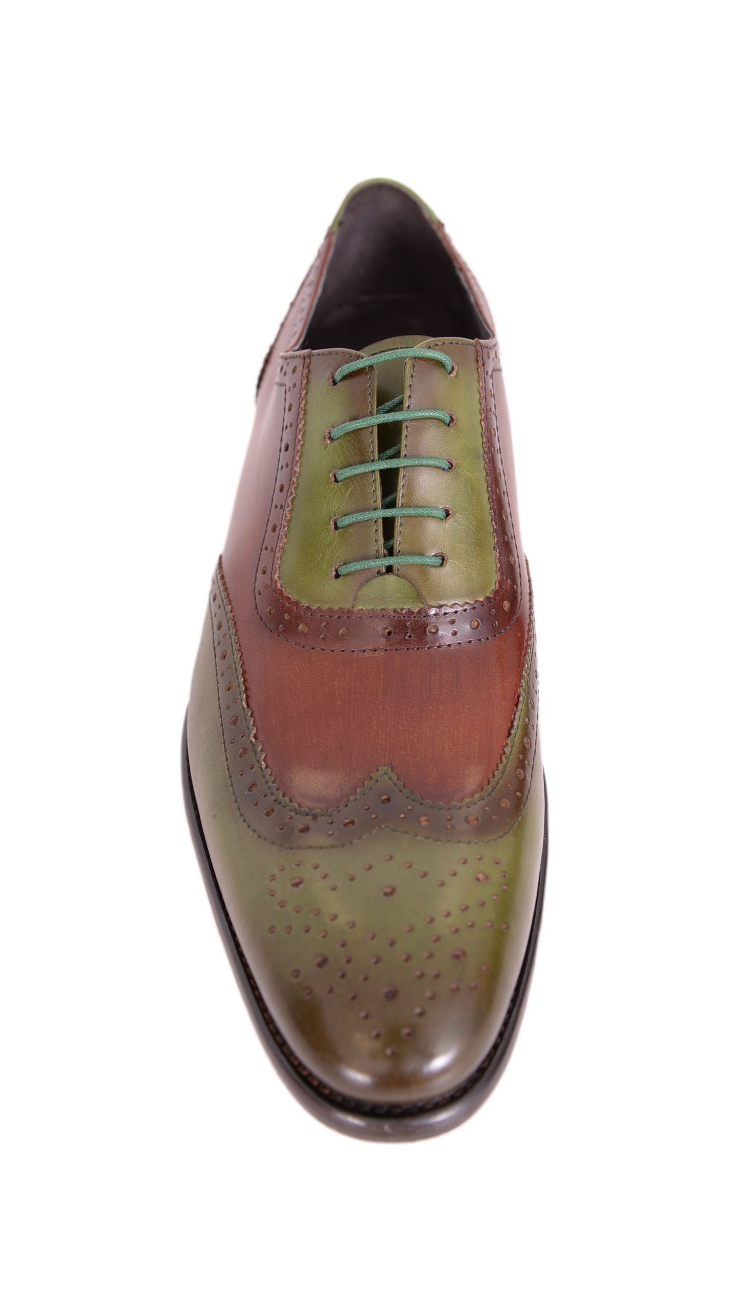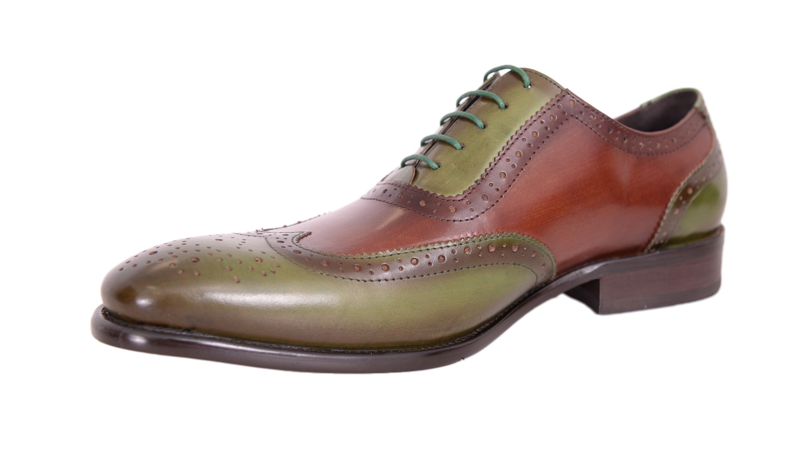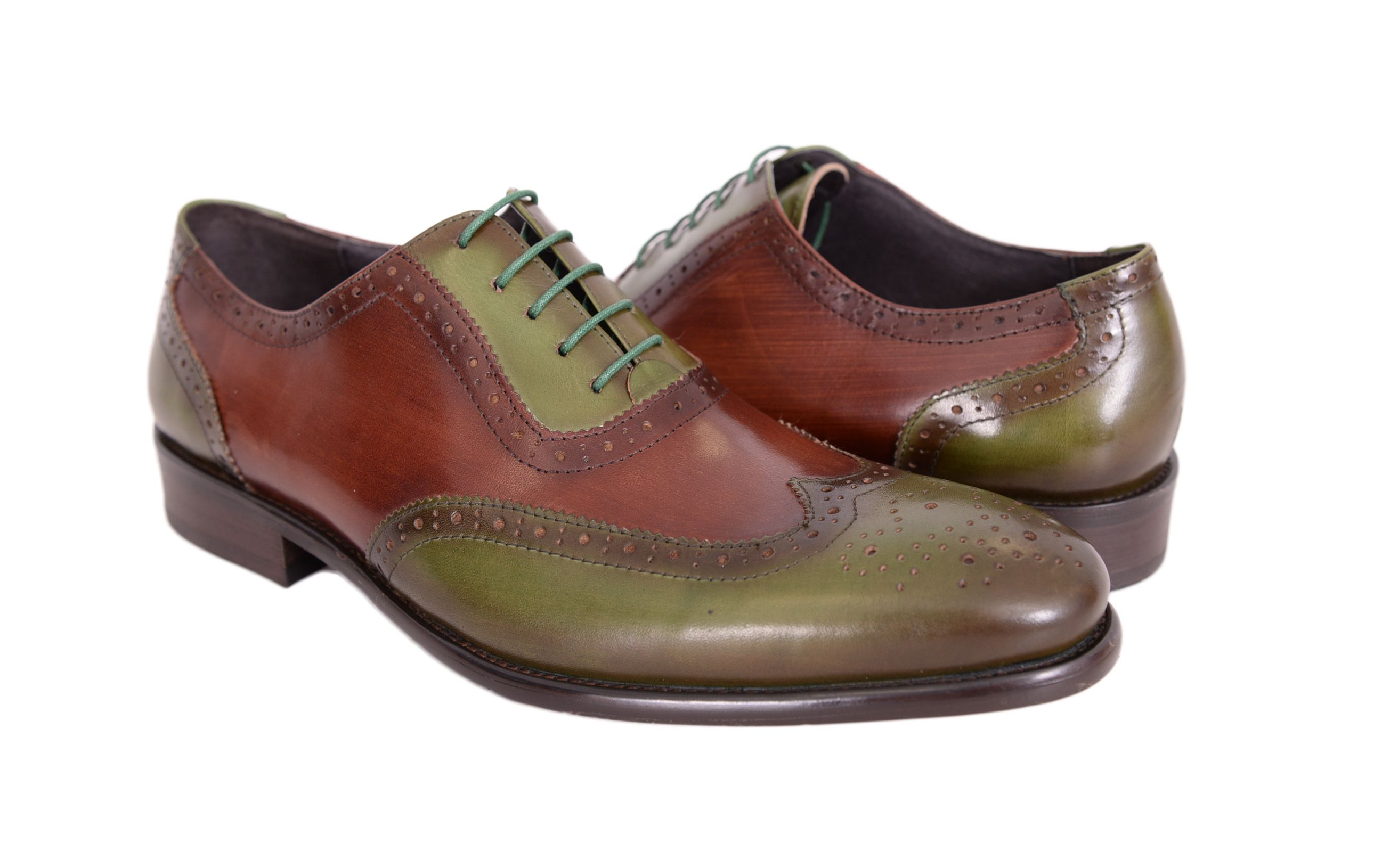 Wing Tip Green Brown Two Tone Genuine Leather Brogue Toe Handmade Lace Up Shoes