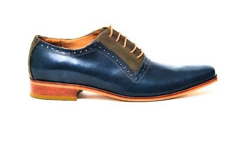 Handmade Oxford Brown Suede Blue Real Leather Orange Laces Rounded Derby Toe Fashion Shoes