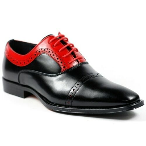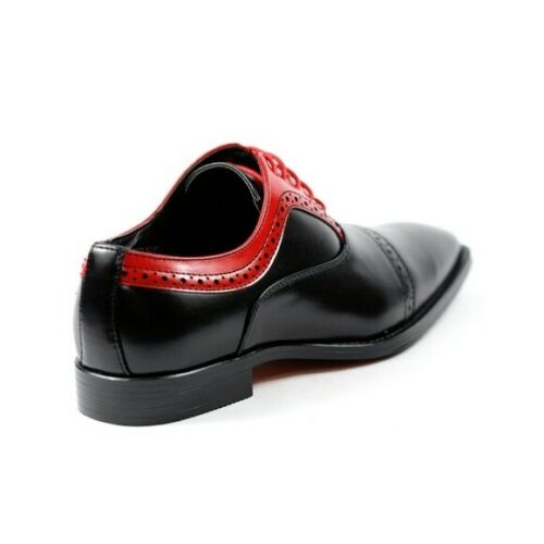 Red Black Oxford Real Leather Handmade Rounded Derby Toe Lace Up Fashion Shoes