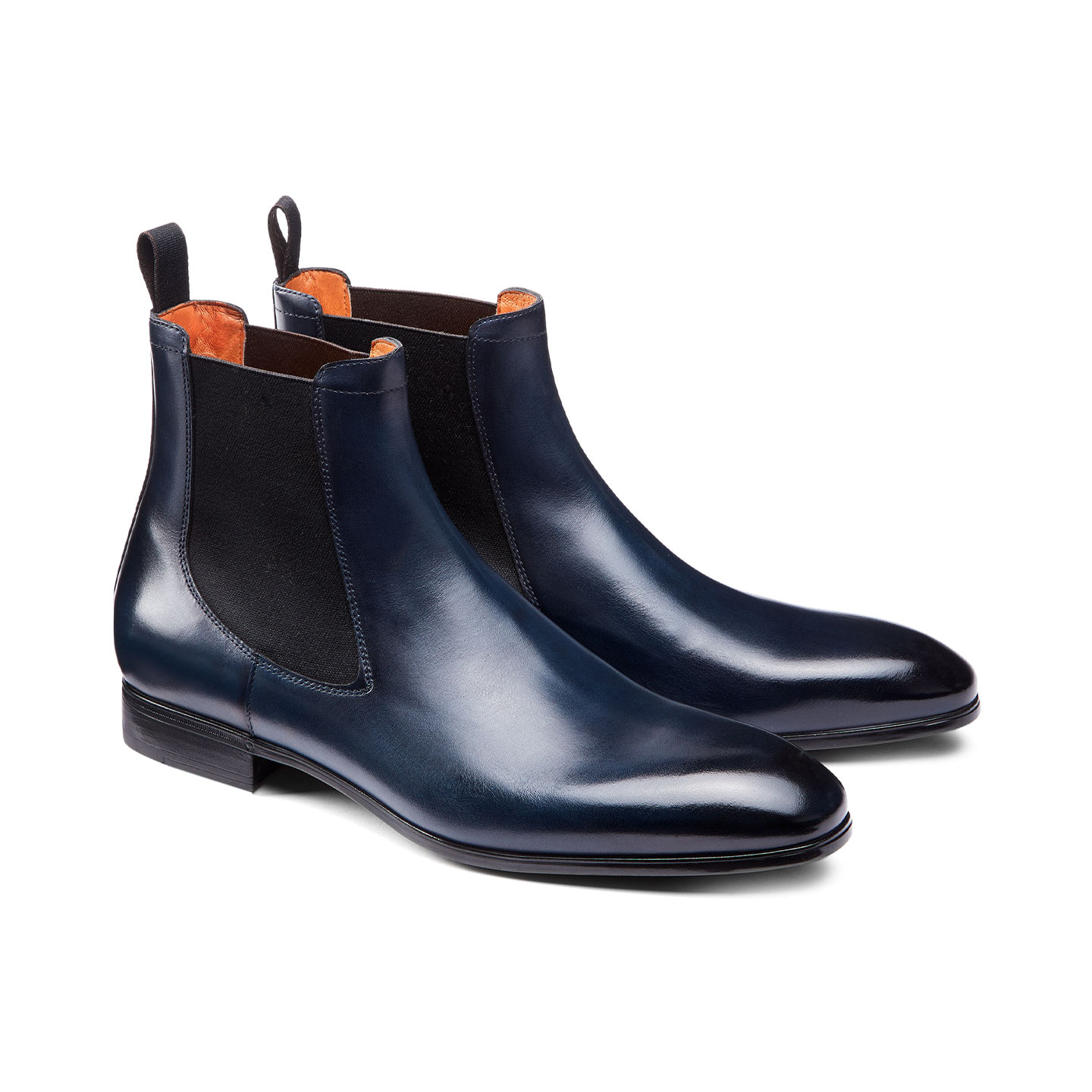 Blue Chelsea High Ankle Genuine Leather Rounded Derby Toe Handmade Boots