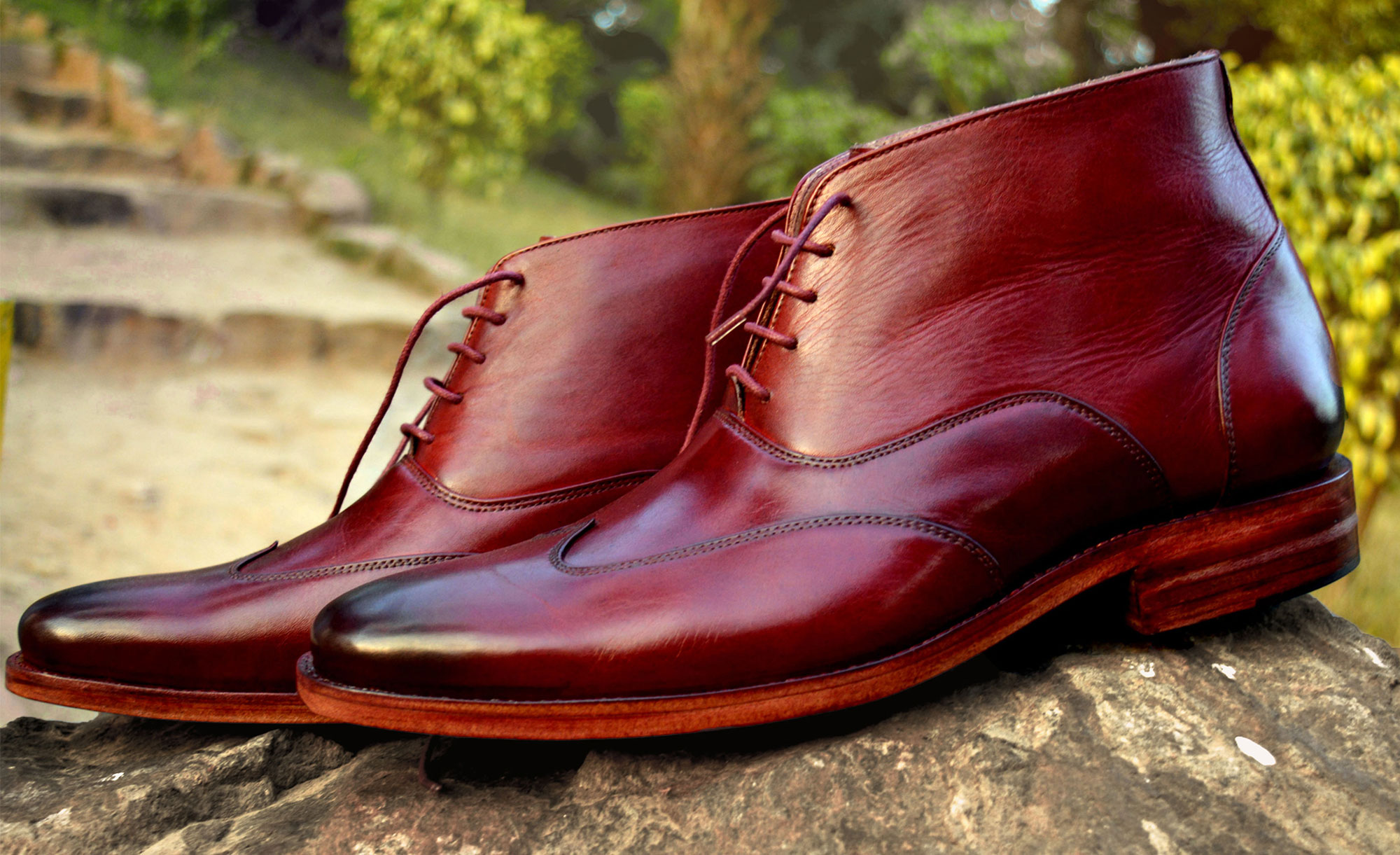 Maroon Chukka Genuine Leather Lace Up Rounded Burnished Derby Toe Wing Tip High Ankle Boots