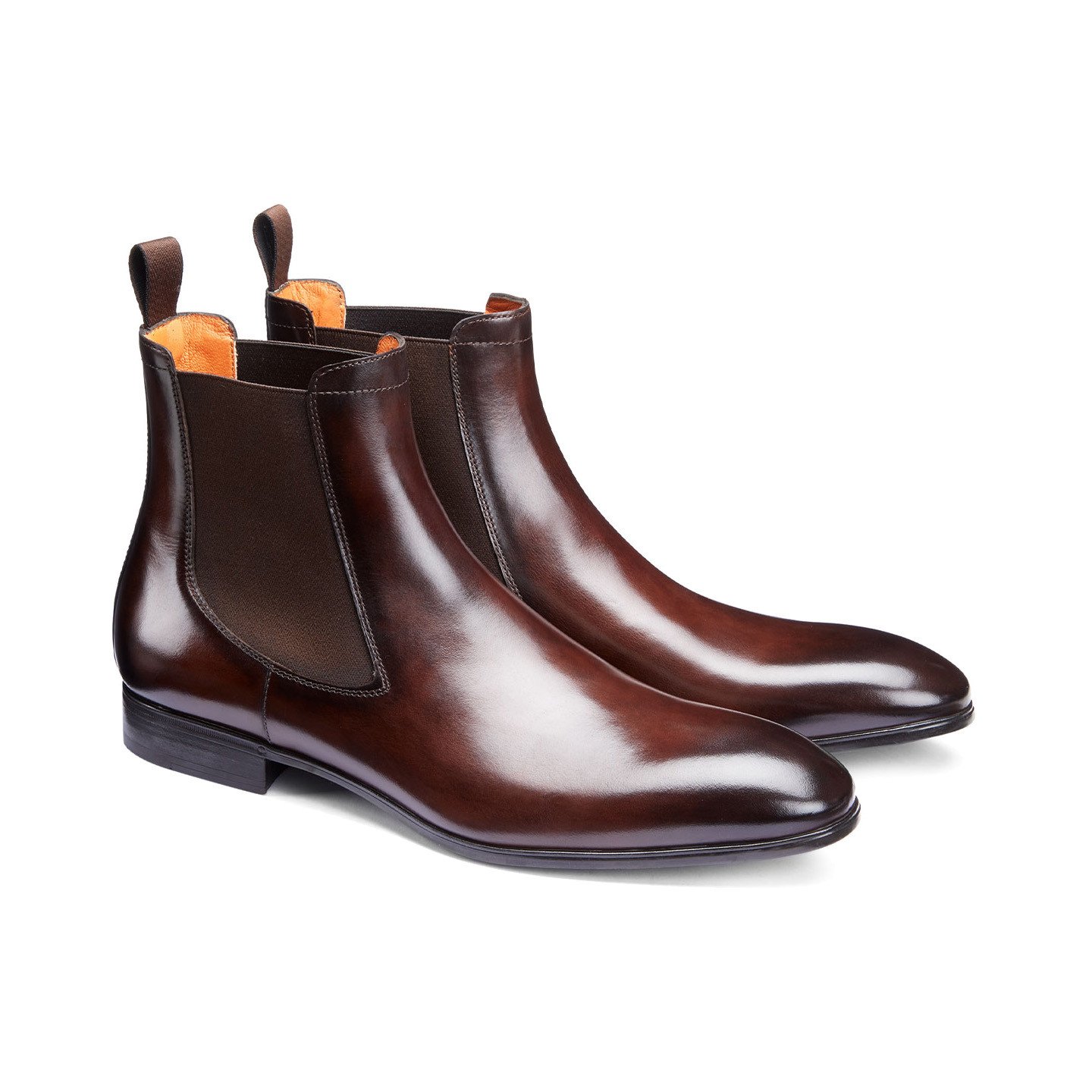 High Ankle Men Genuine Patent Leather Rounded Derby Toe Handmade Chelsea Boots