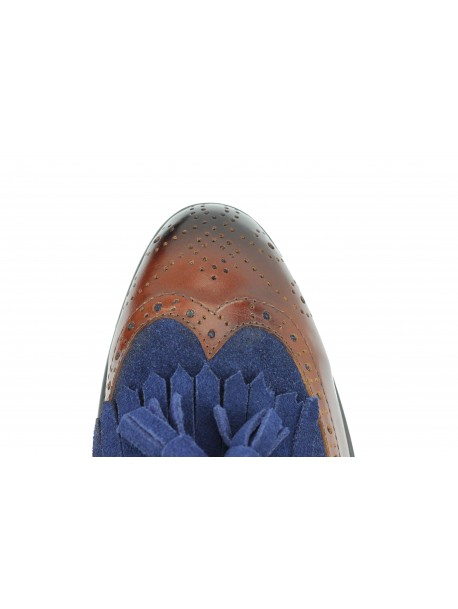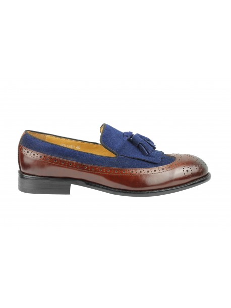 Blue Suede Wing Tip Fringed Tassel Loafer Slip On Brown Genuine Leather Brogue Toe Handmade Shoes
